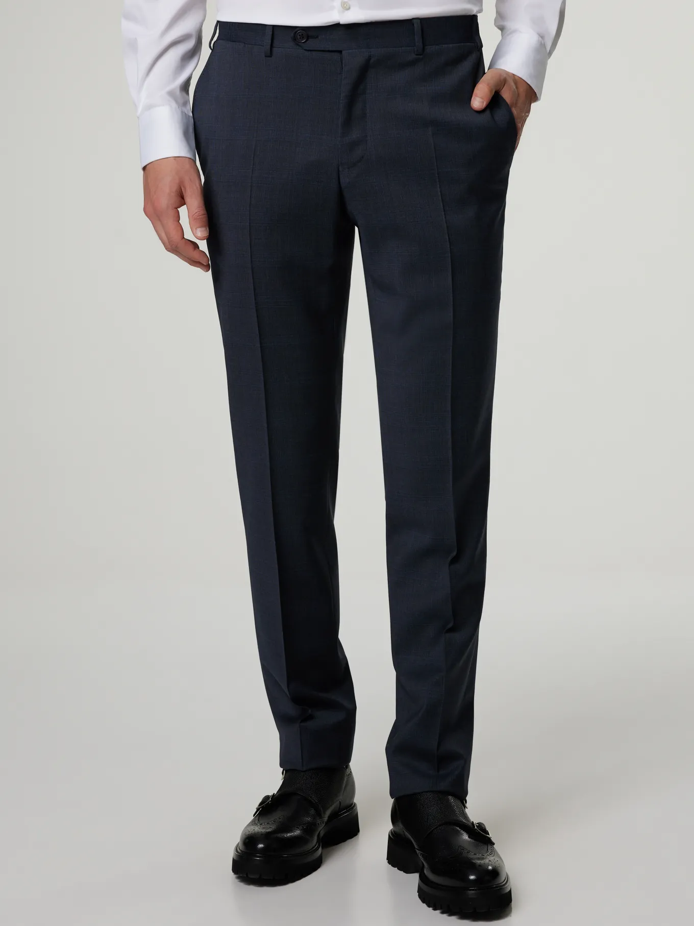 Unser Model misst 187 cm und trägt Grösse 48.