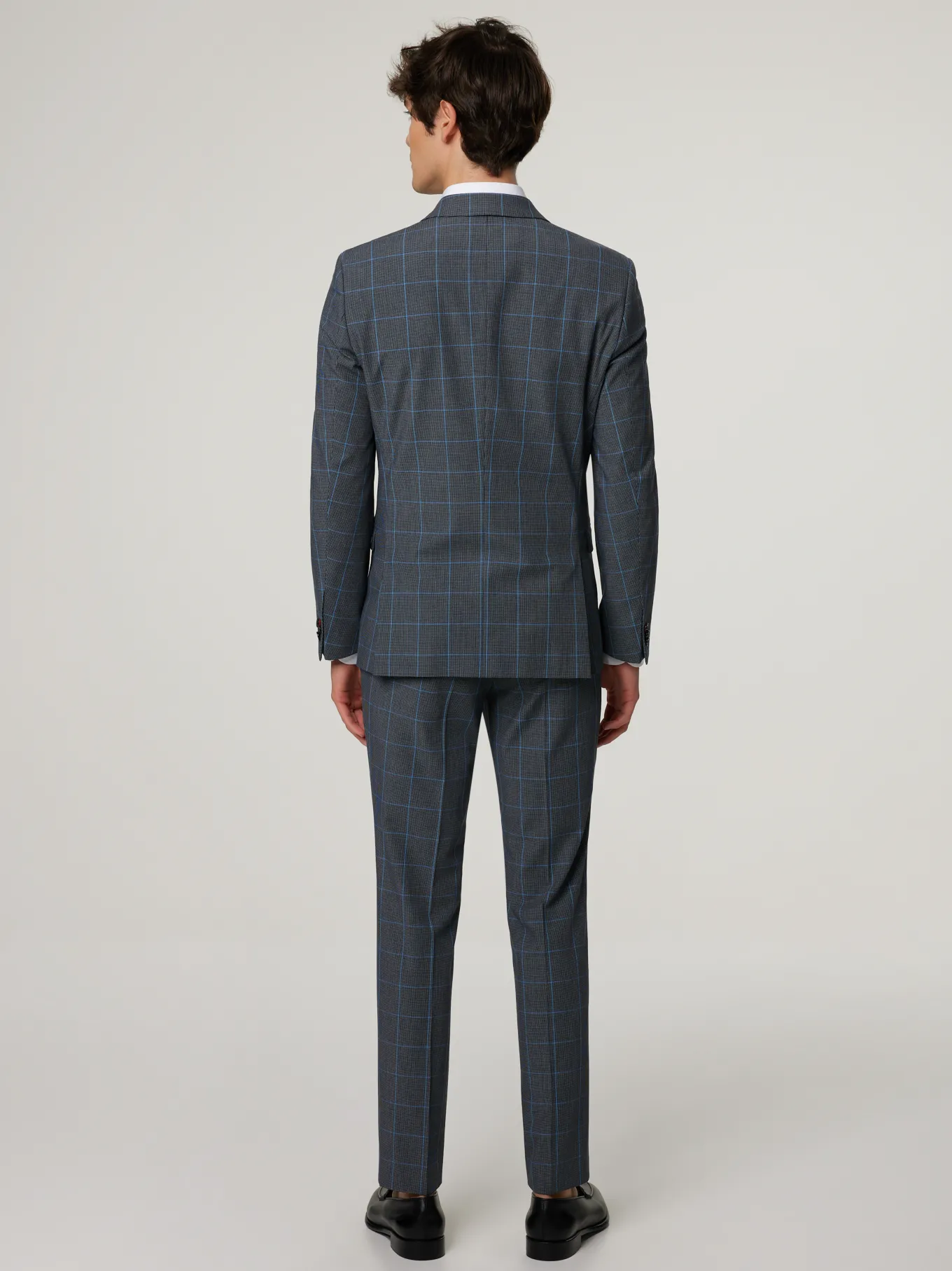Unser Model misst 187 cm und trägt Grösse 48.