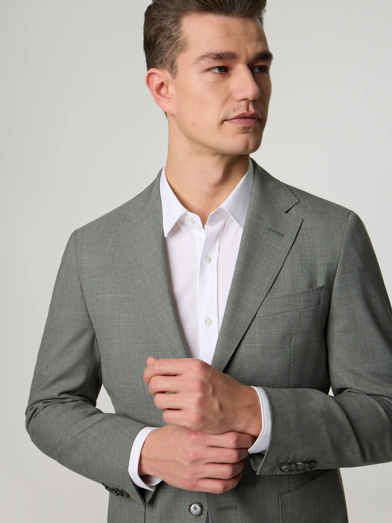 Unser Model misst 187 cm und trägt Grösse 48.