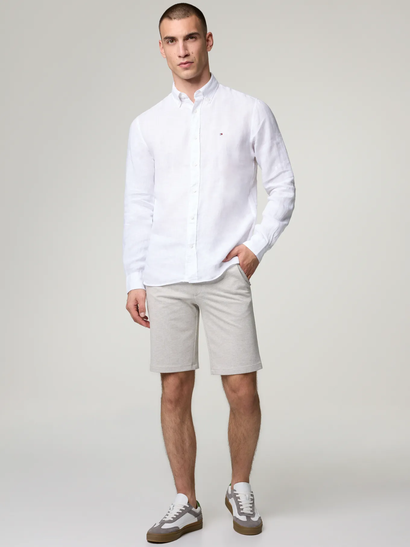 Unser Model misst 187 cm und trägt Grösse 48.