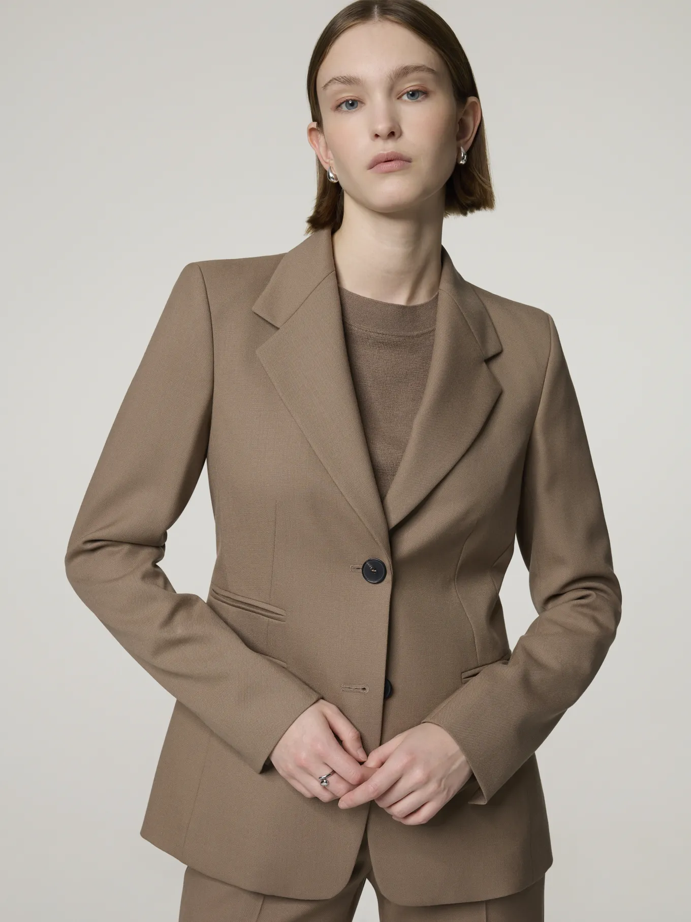 Unser Model misst 174 cm und trägt Grösse 36.