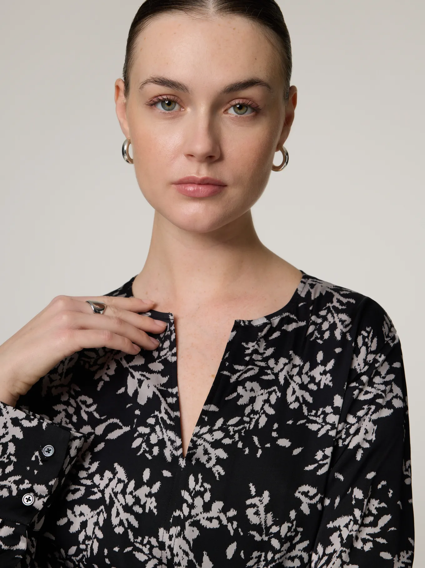 Unser Model misst 177 cm und trägt Grösse 36.