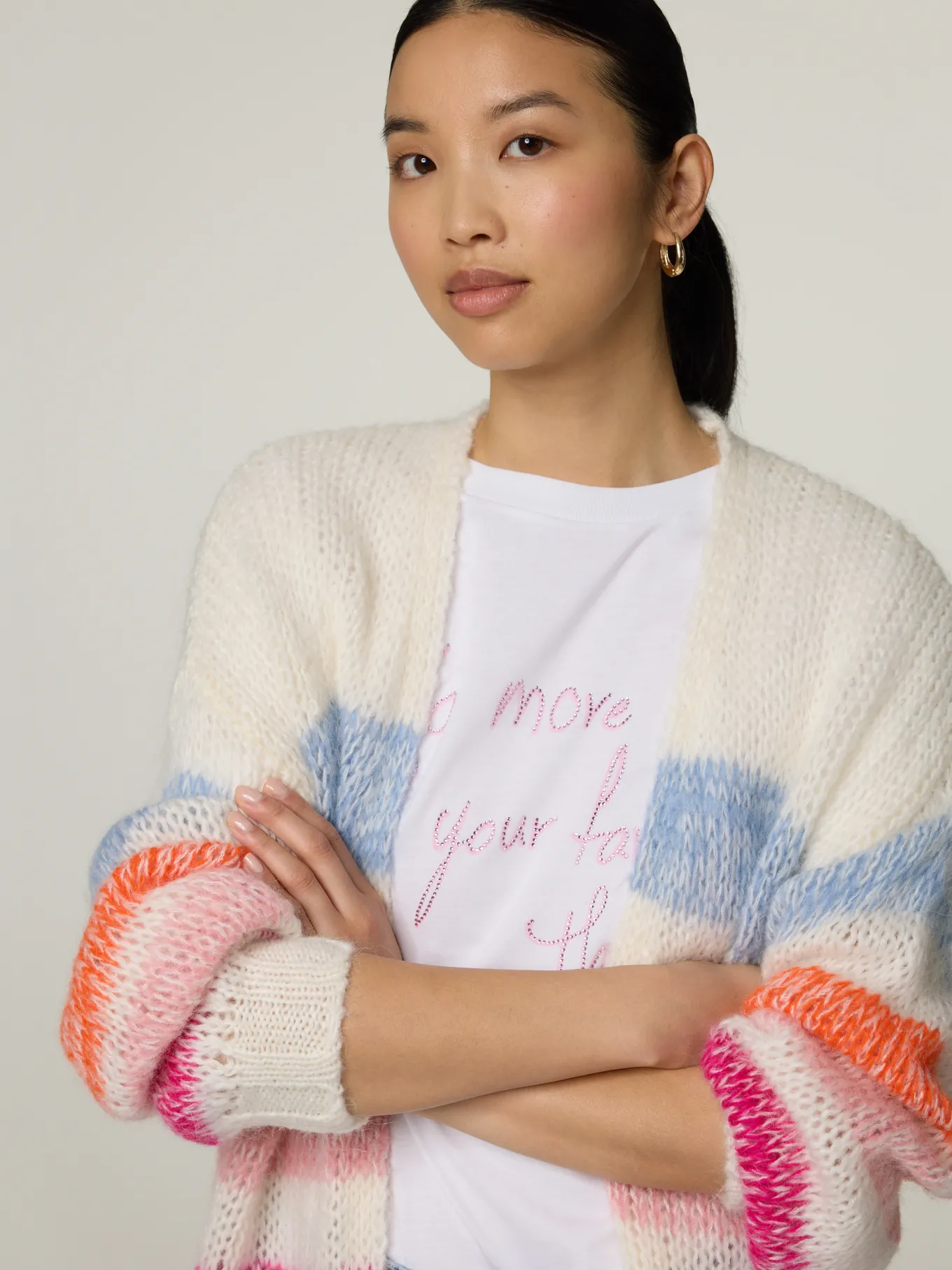 Unser Model misst 174 cm und trägt Grösse S.