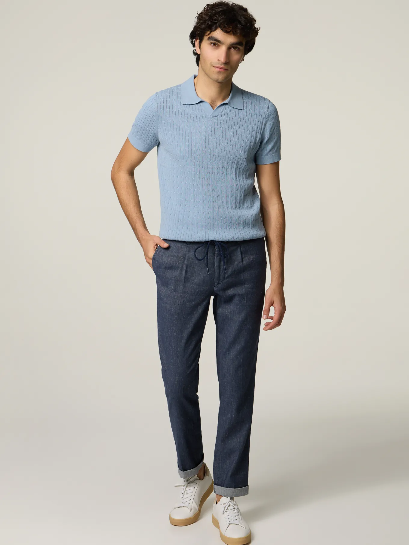 Unser Model misst 185 cm und trägt Grösse 48.