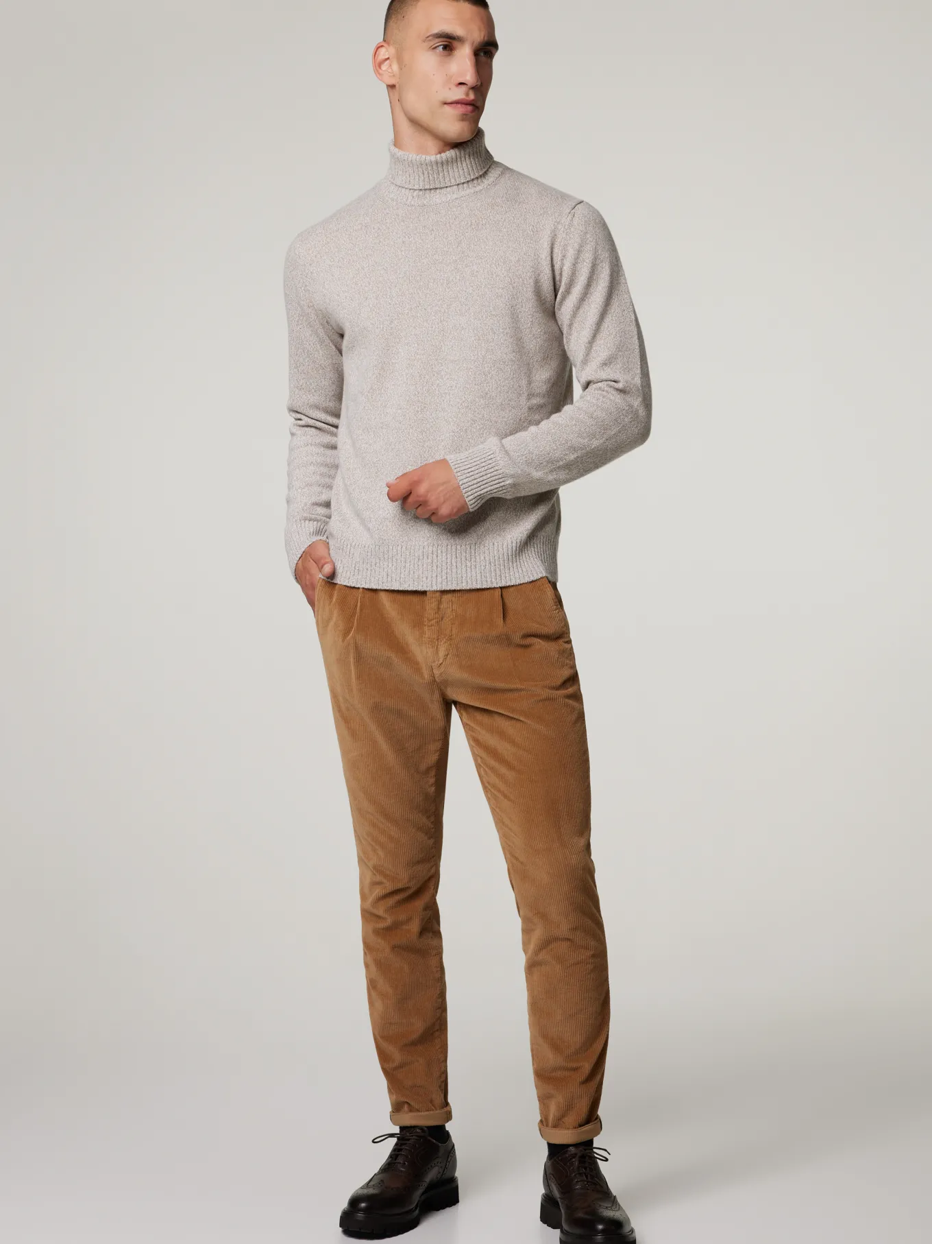 Unser Model misst 187 cm und trägt Grösse 48.