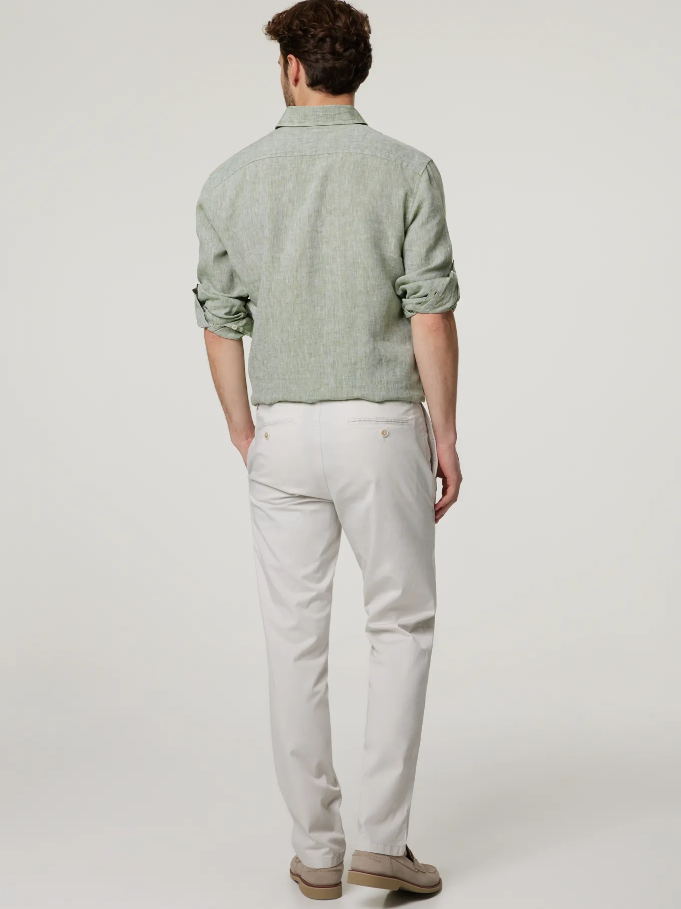 Unser Model misst 187 cm und trägt Grösse 48.