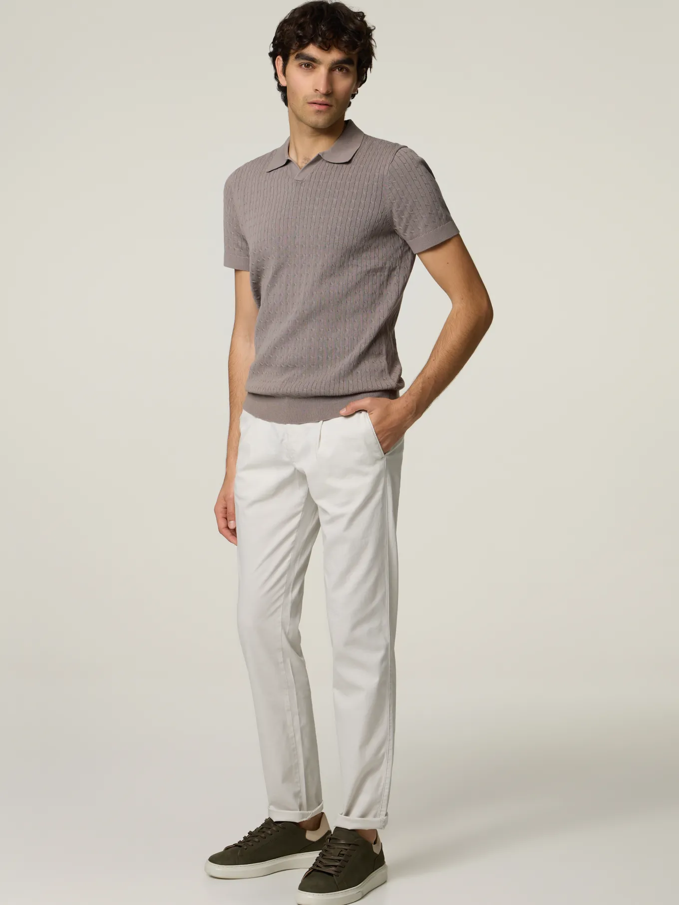 Unser Model misst 185 cm und trägt Grösse 48.