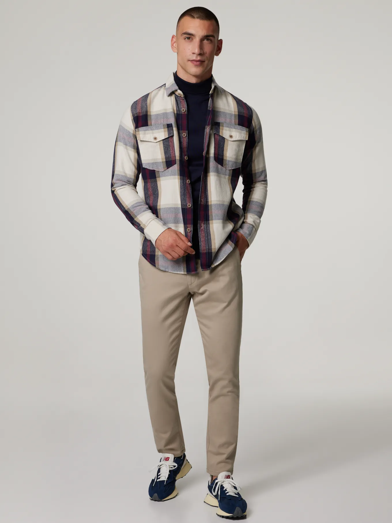 Unser Model misst 190 cm und trägt Grösse 48.