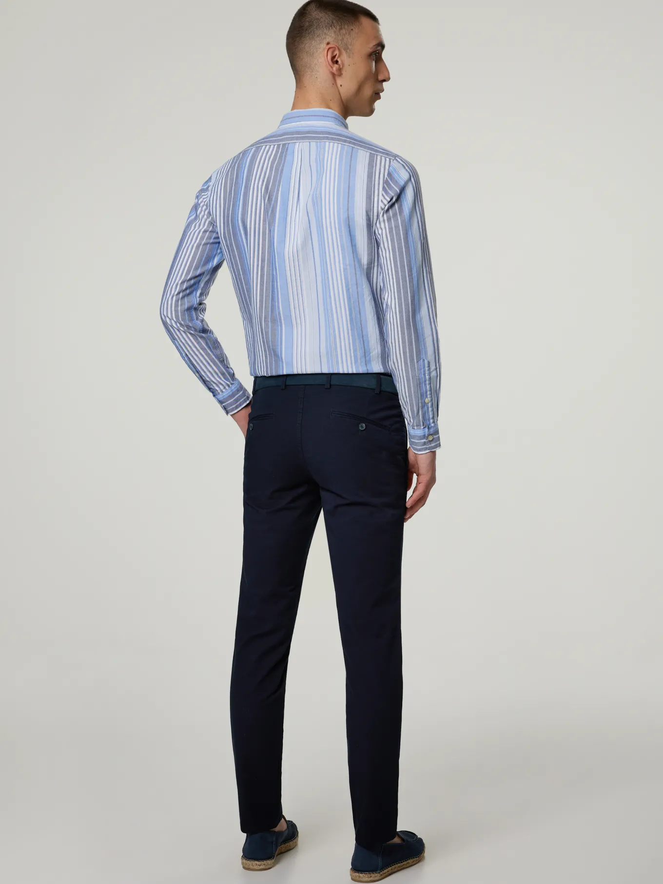 Unser Model misst 187 cm und trägt Grösse 48.
