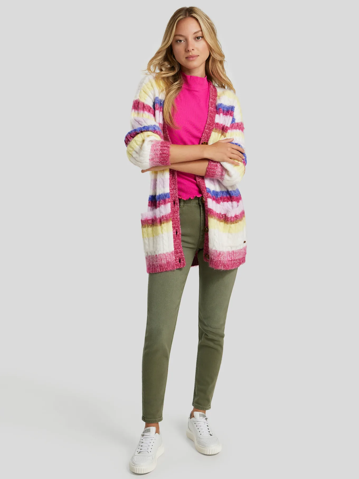 Unser Model misst 176 cm und trägt Grösse 27/32.
