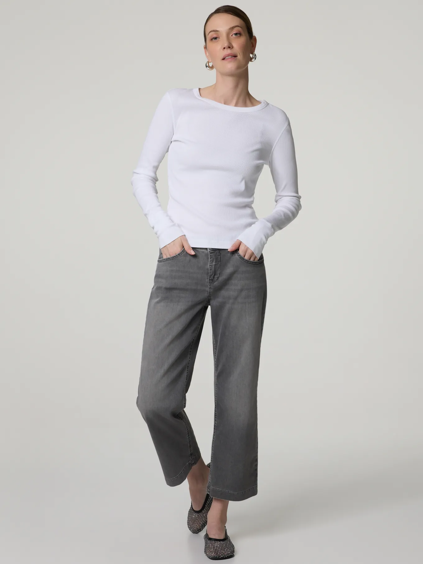Unser Model misst 178 cm und trägt Grösse 36.