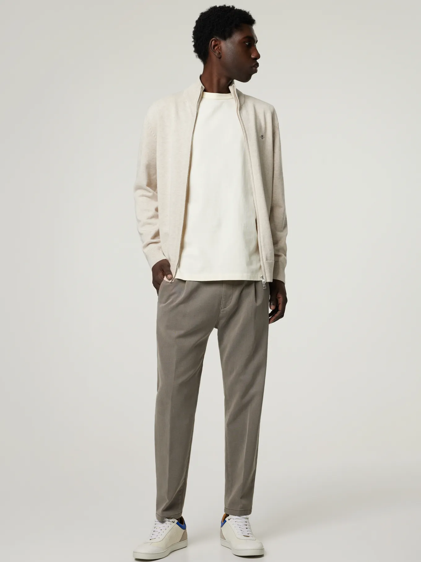 Unser Model misst 187 cm und trägt Grösse 31/32.
