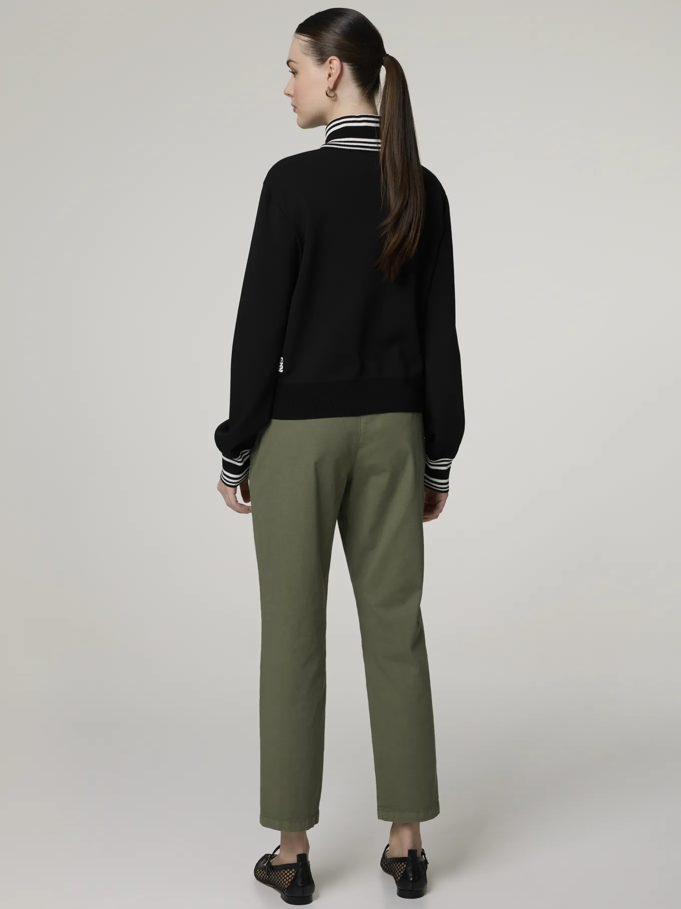 Unser Model misst 177 cm und trägt Grösse 36.