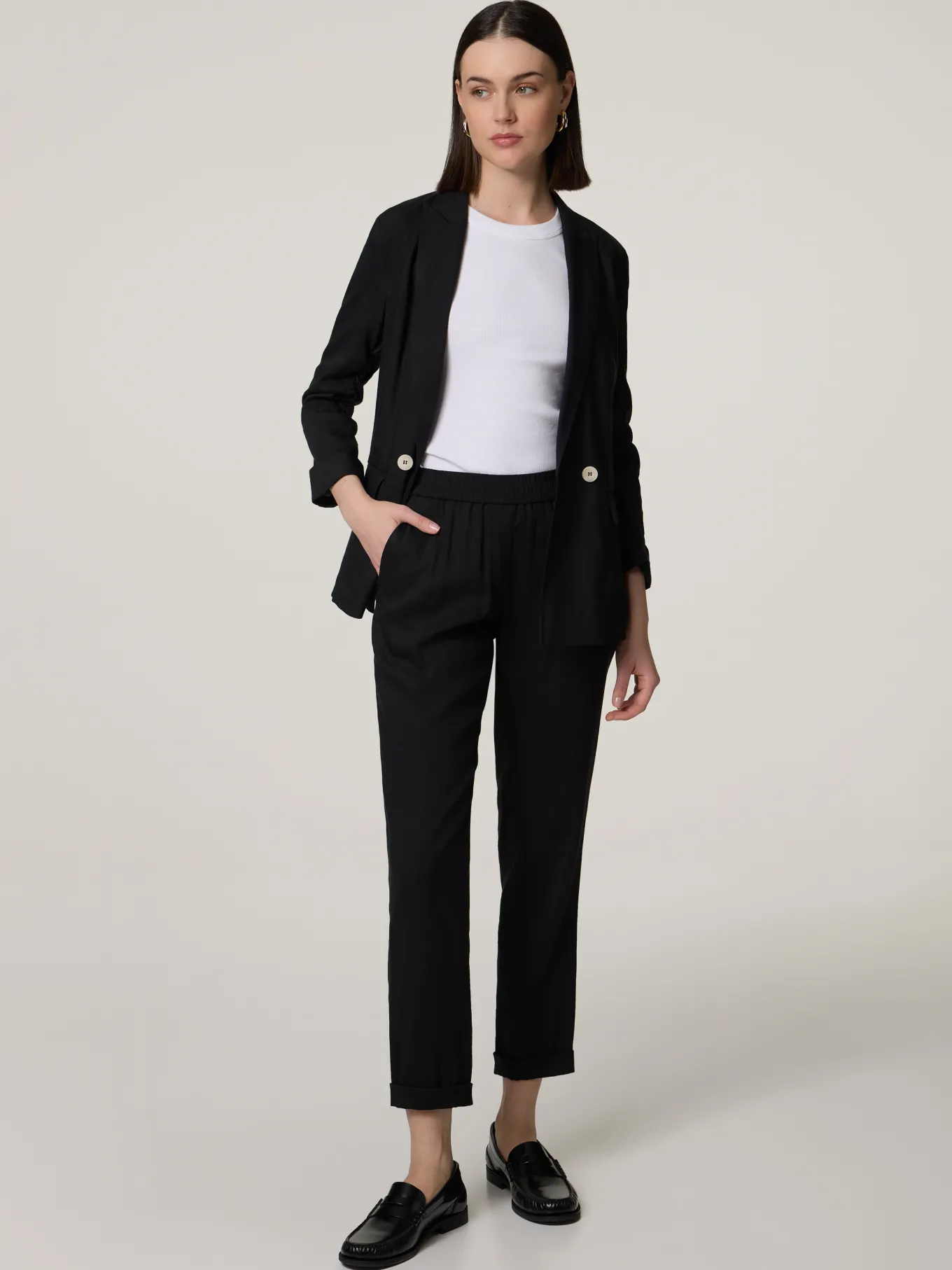 Unser Model misst 177 cm und trägt Grösse 36.
