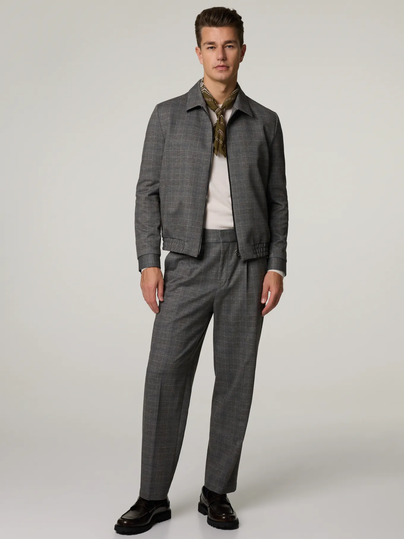 Unser Model misst 187 cm und trägt Grösse 48.