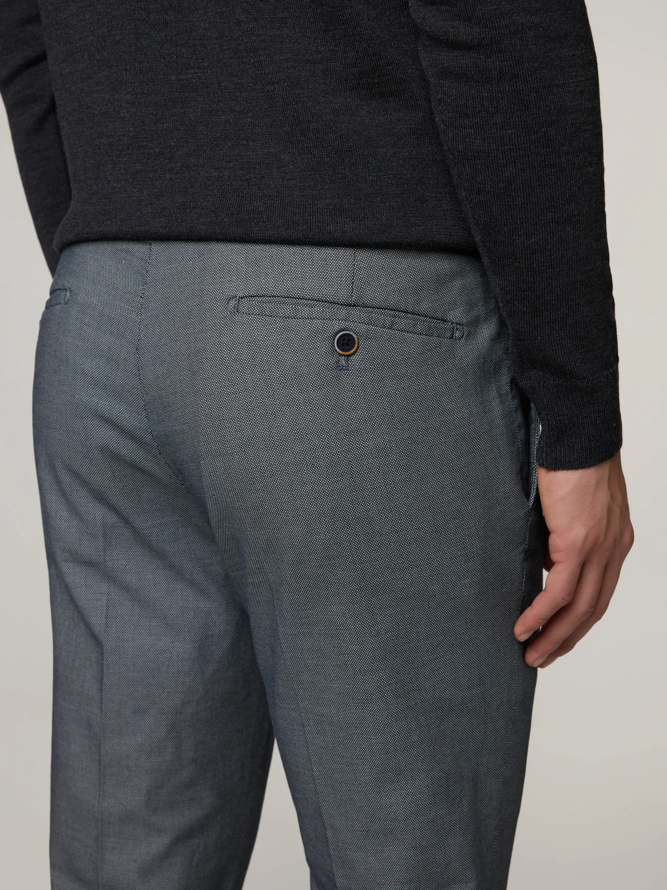 Unser Model misst 185 cm und trägt Grösse 48.