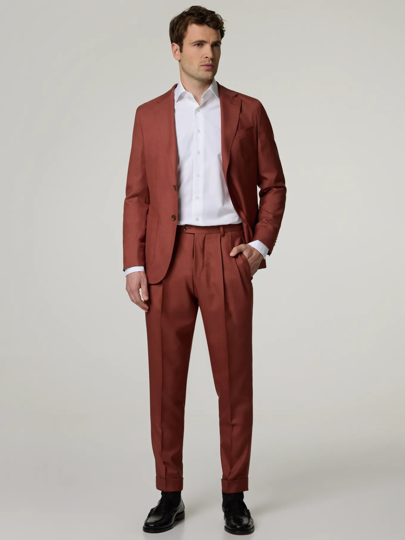 Unser Model misst 186 cm und trägt Grösse 48.
