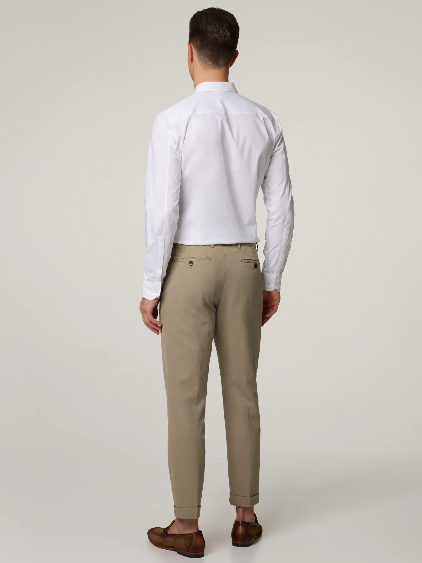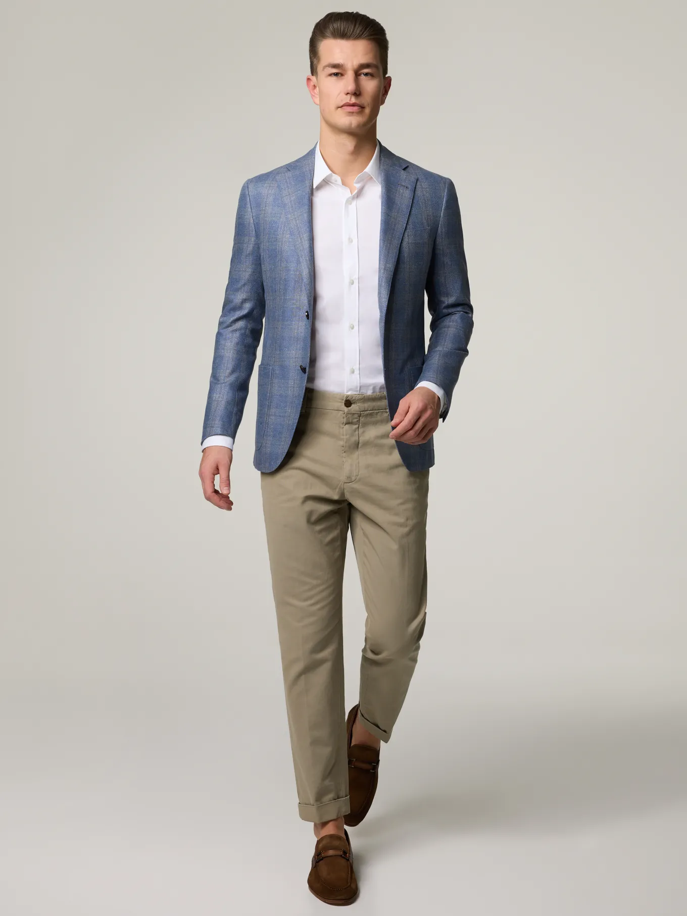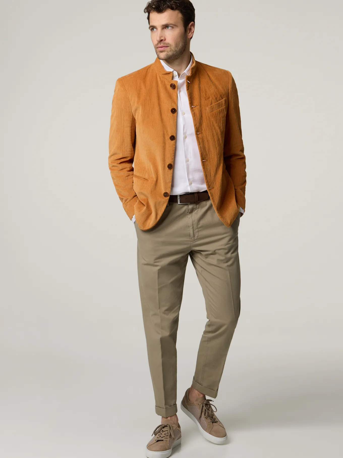 Unser Model misst 187 cm und trägt Grösse 48.