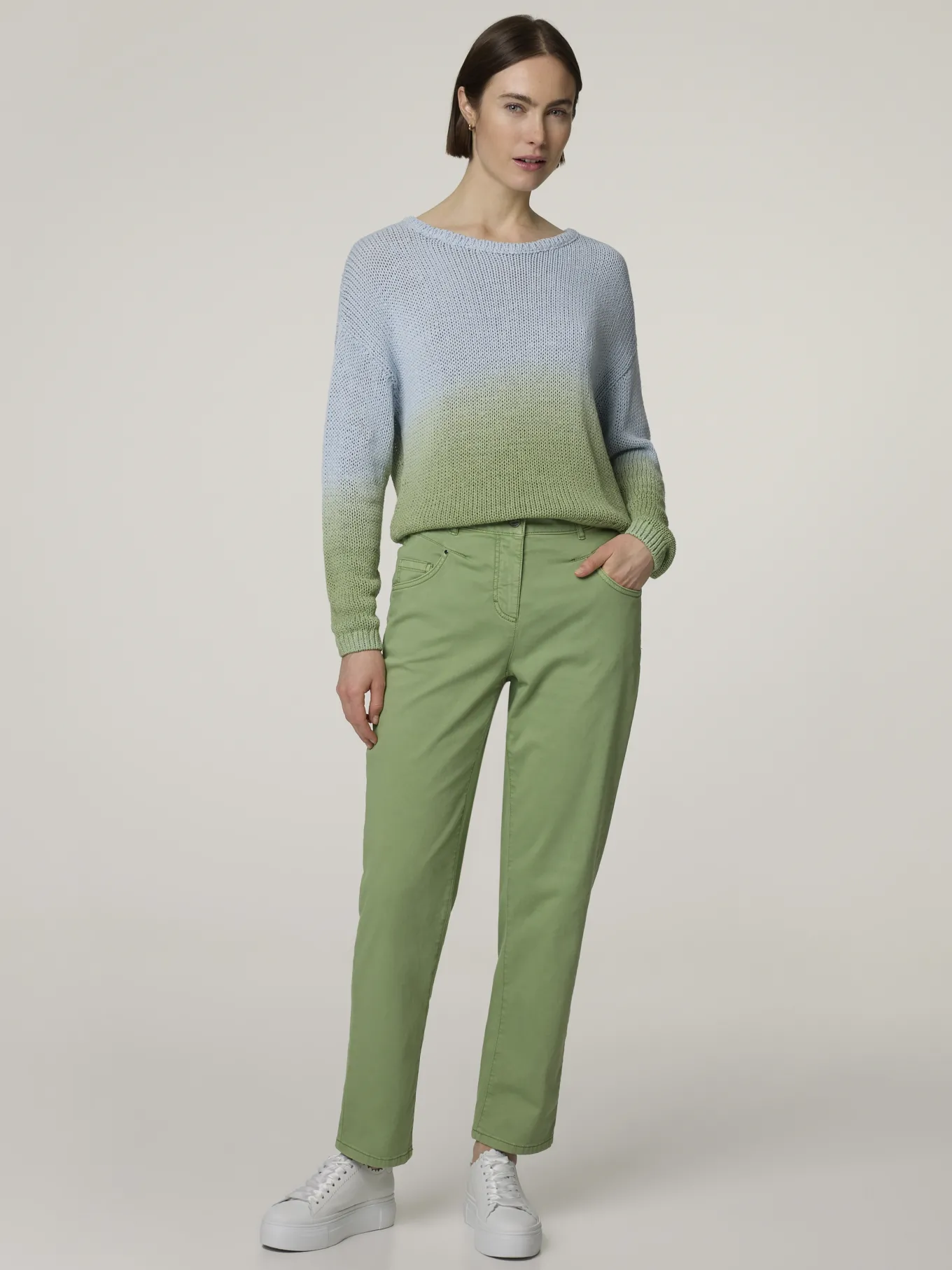 Unser Model misst 175 cm und trägt Grösse 36.