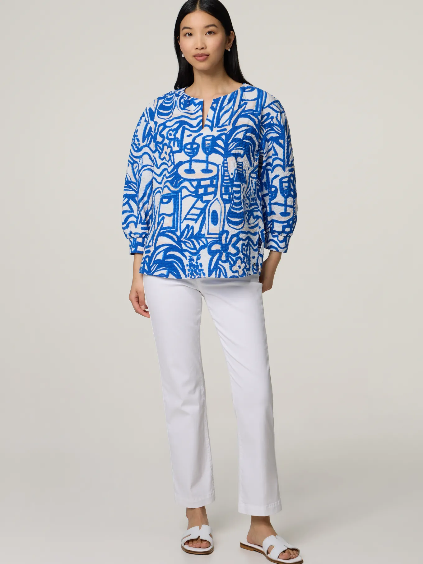 Unser Model misst 174 cm und trägt Grösse 36.