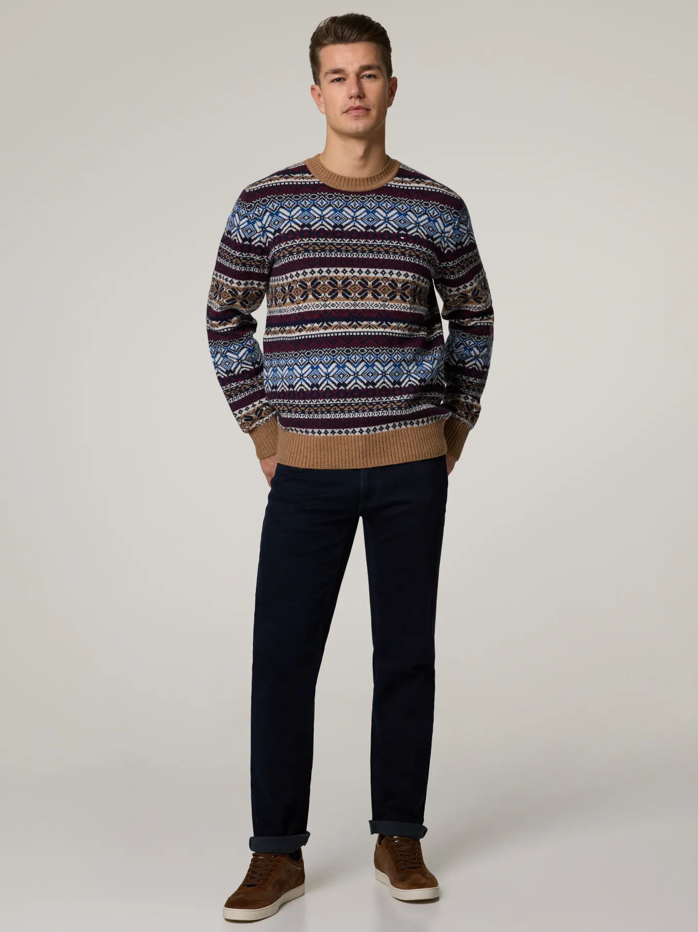 Unser Model misst 187 cm und trägt Grösse 32/32.