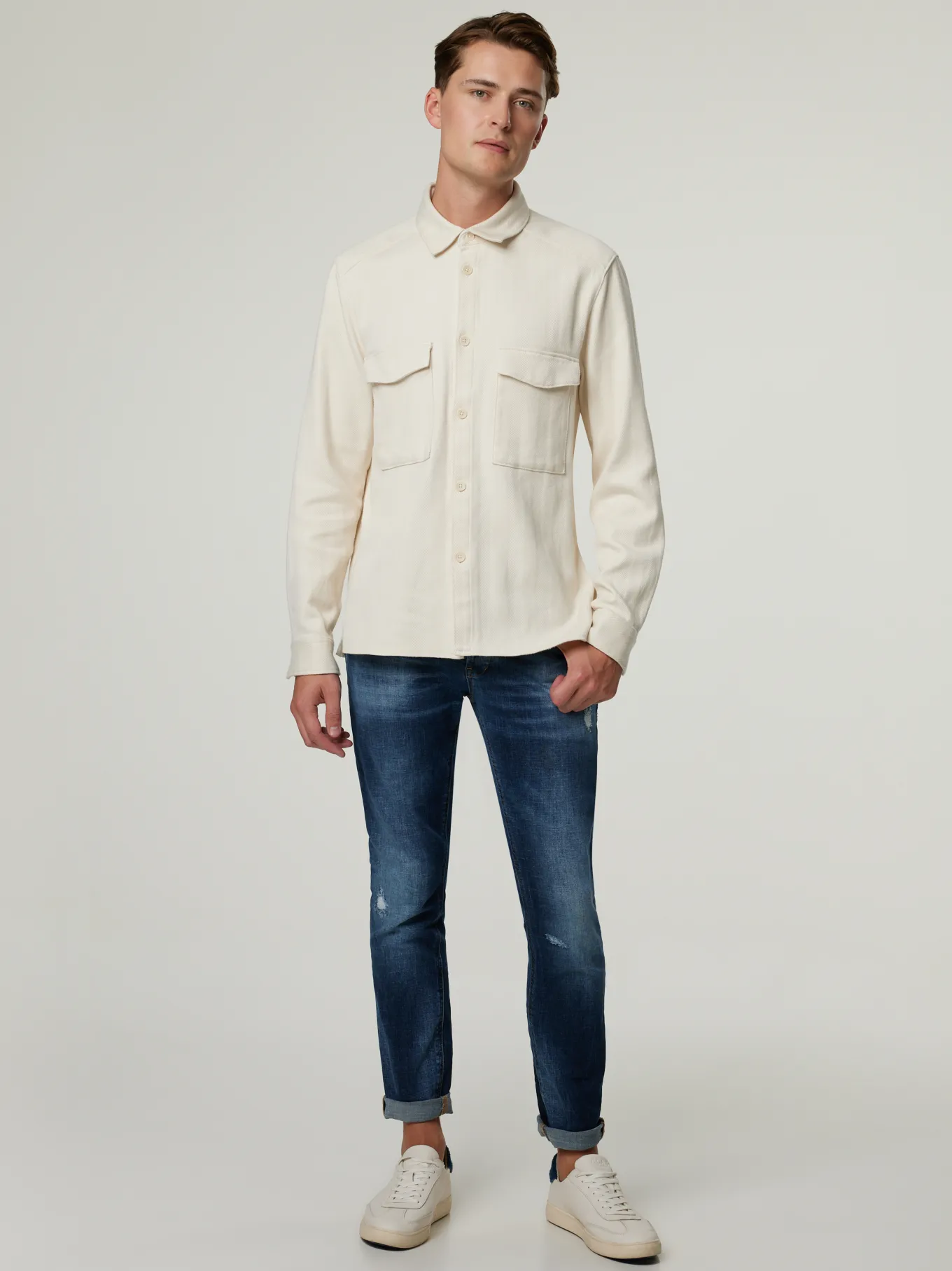 Unser Model misst 187 cm und trägt Grösse 32/32.