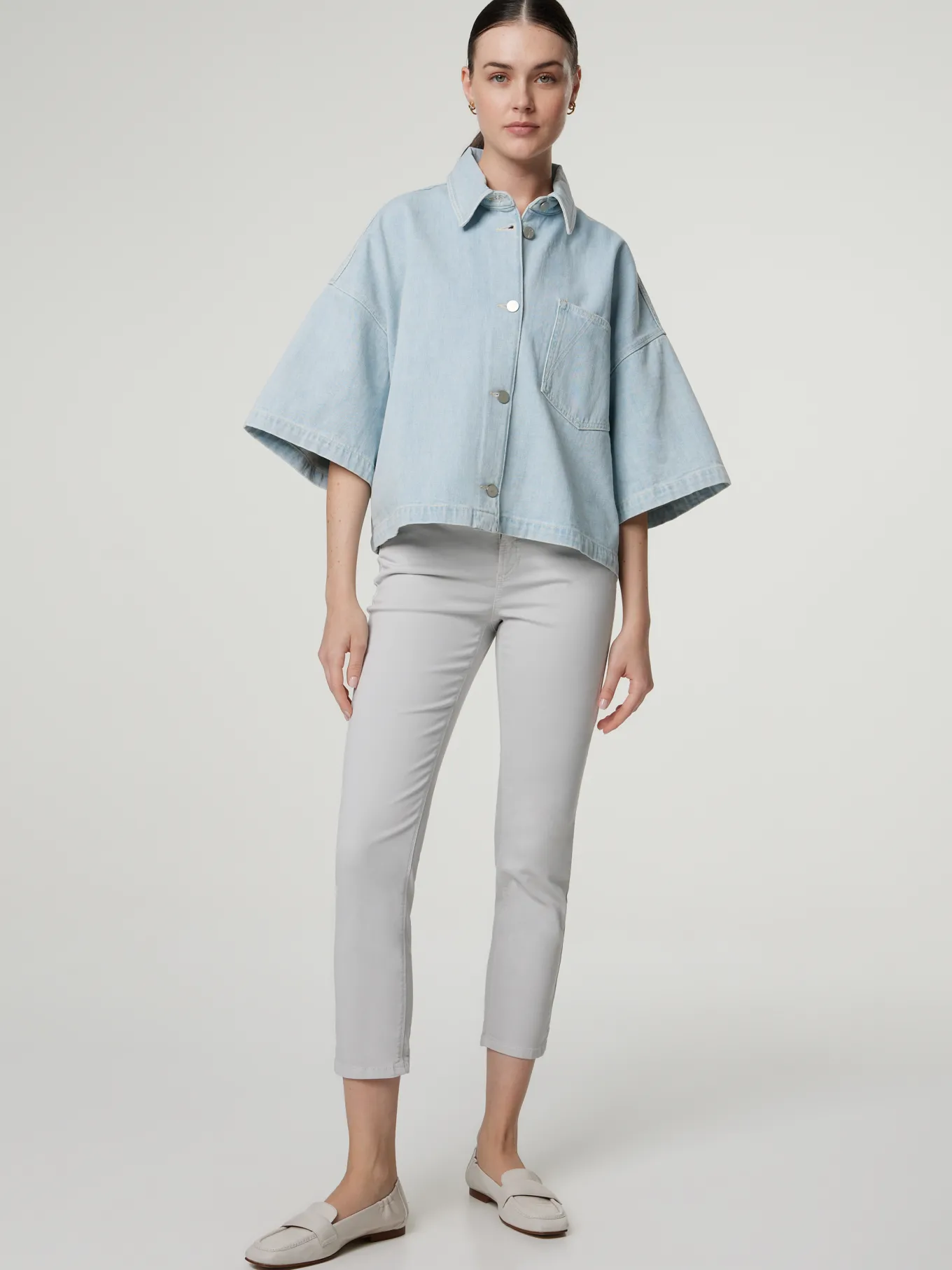 Unser Model misst 176 cm und trägt Grösse 36.
