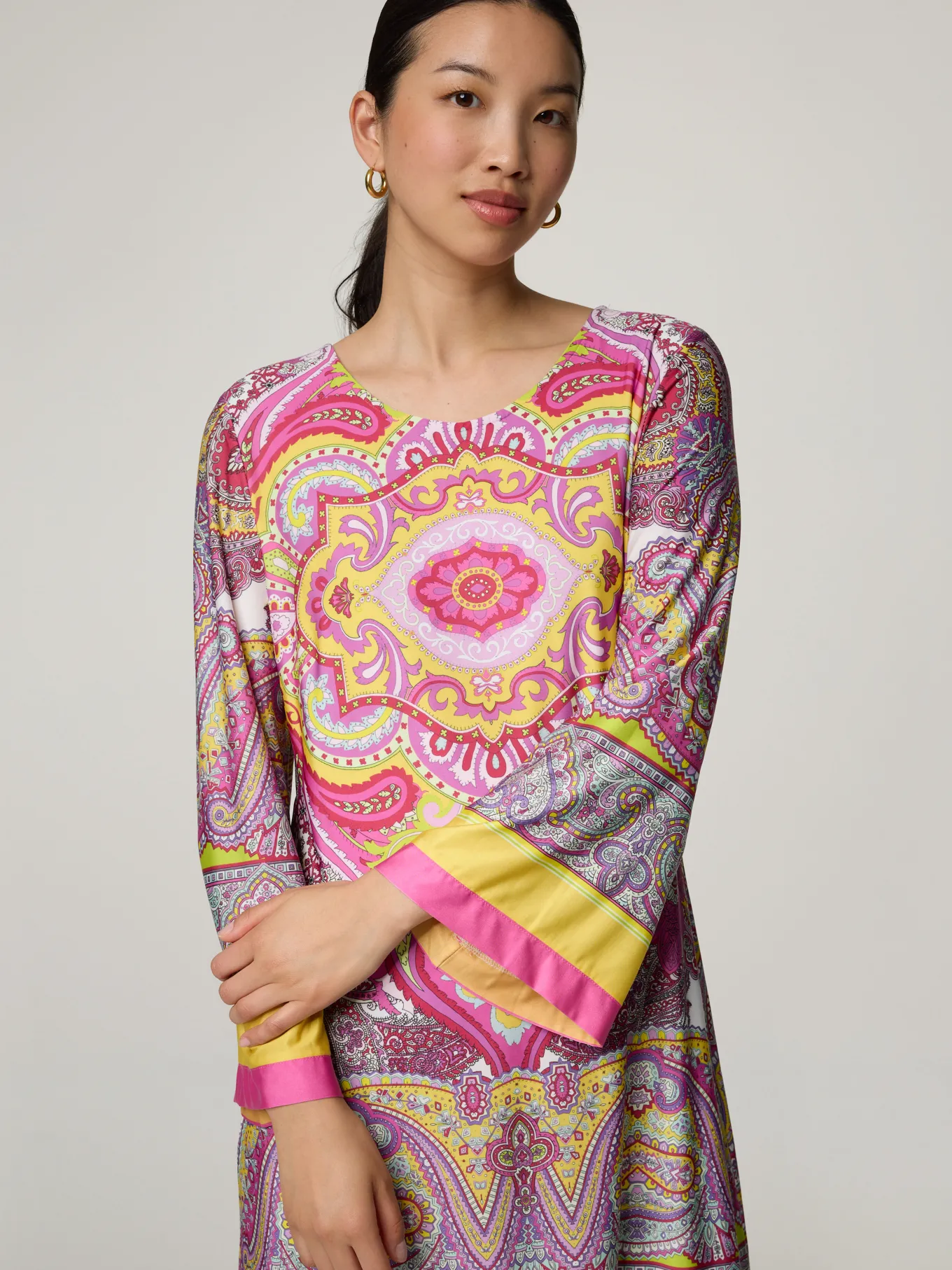 Unser Model misst 176 cm und trägt Grösse 36.