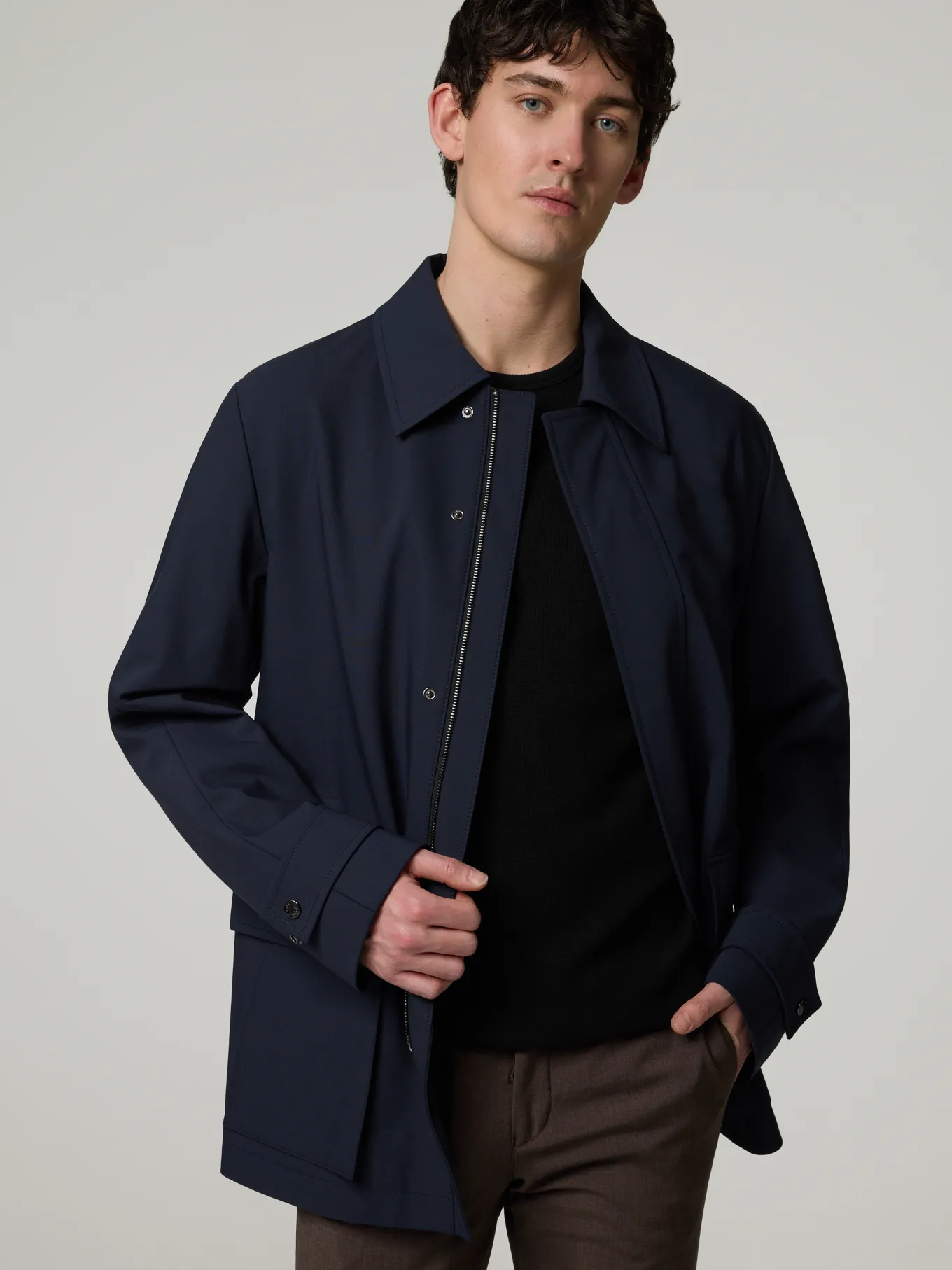 Unser Model misst 190 cm und trägt Grösse 50.