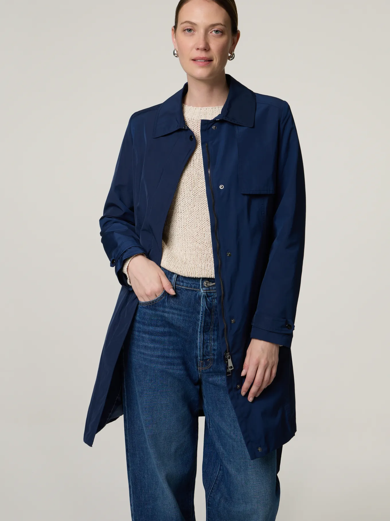 Unser Model misst 178 cm und trägt Grösse 36.