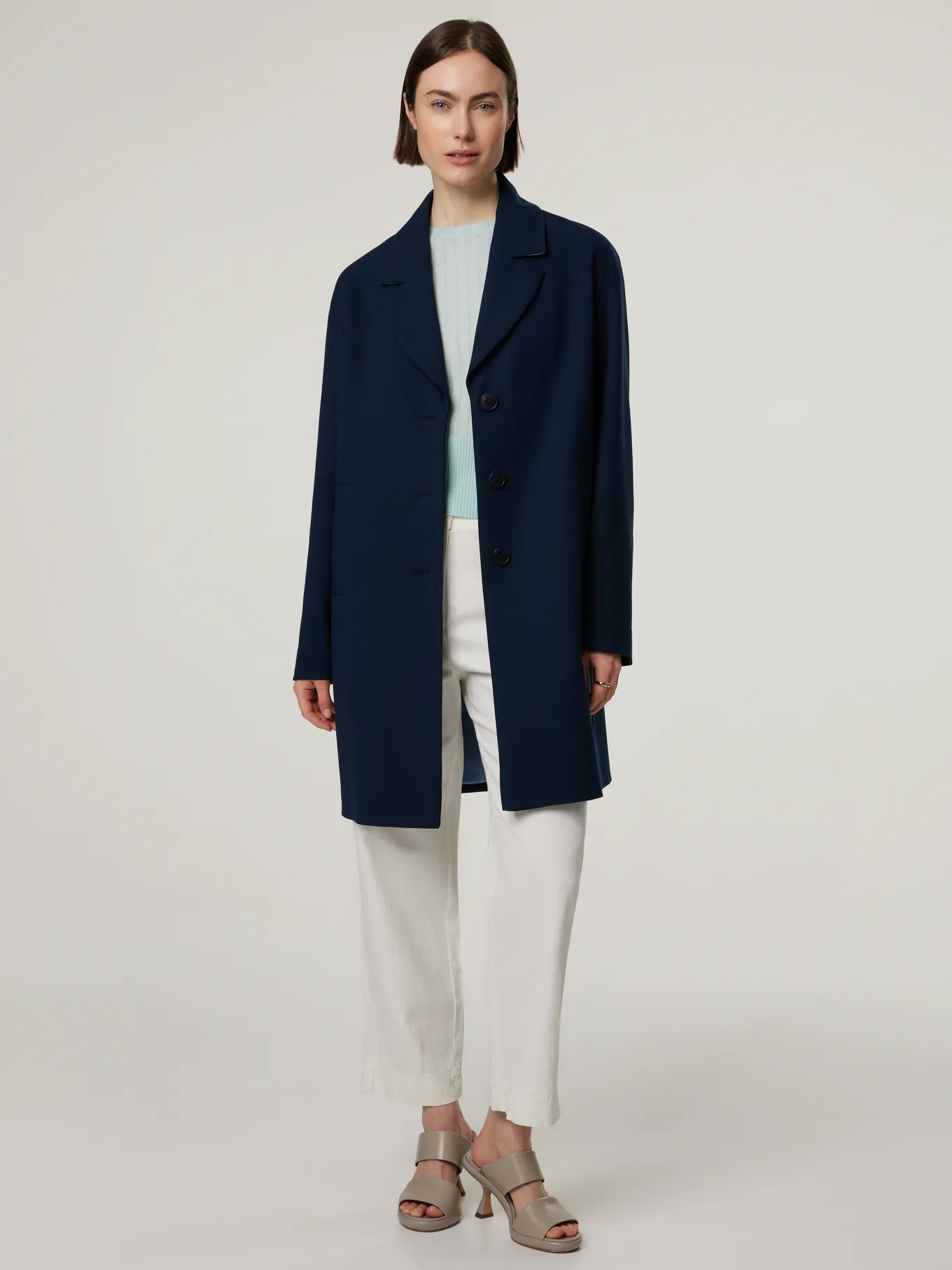 Unser Model misst 176 cm und trägt Grösse 38.