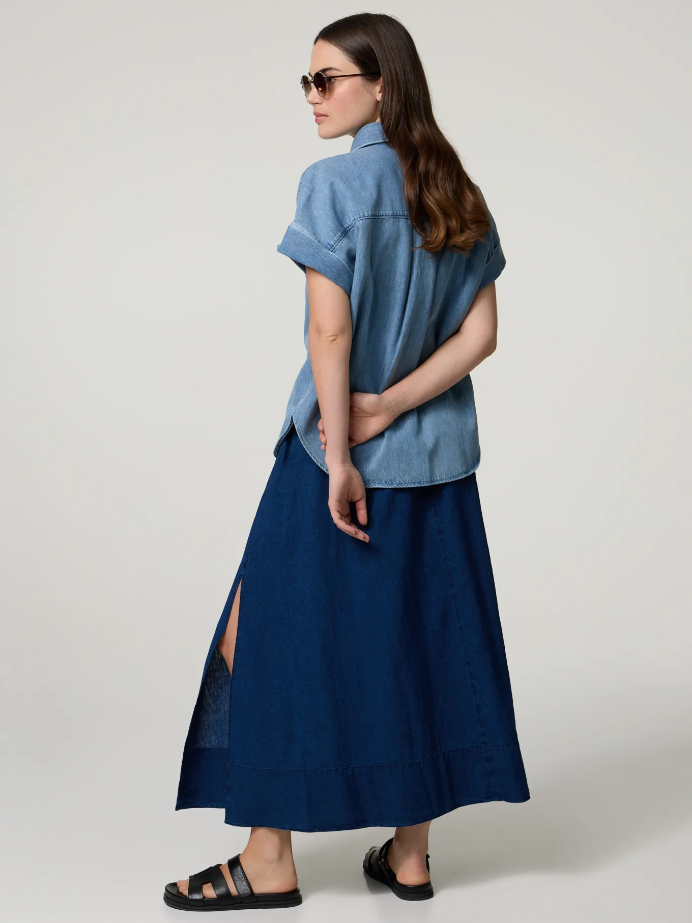 Midijupe mit Leinen SLIT
