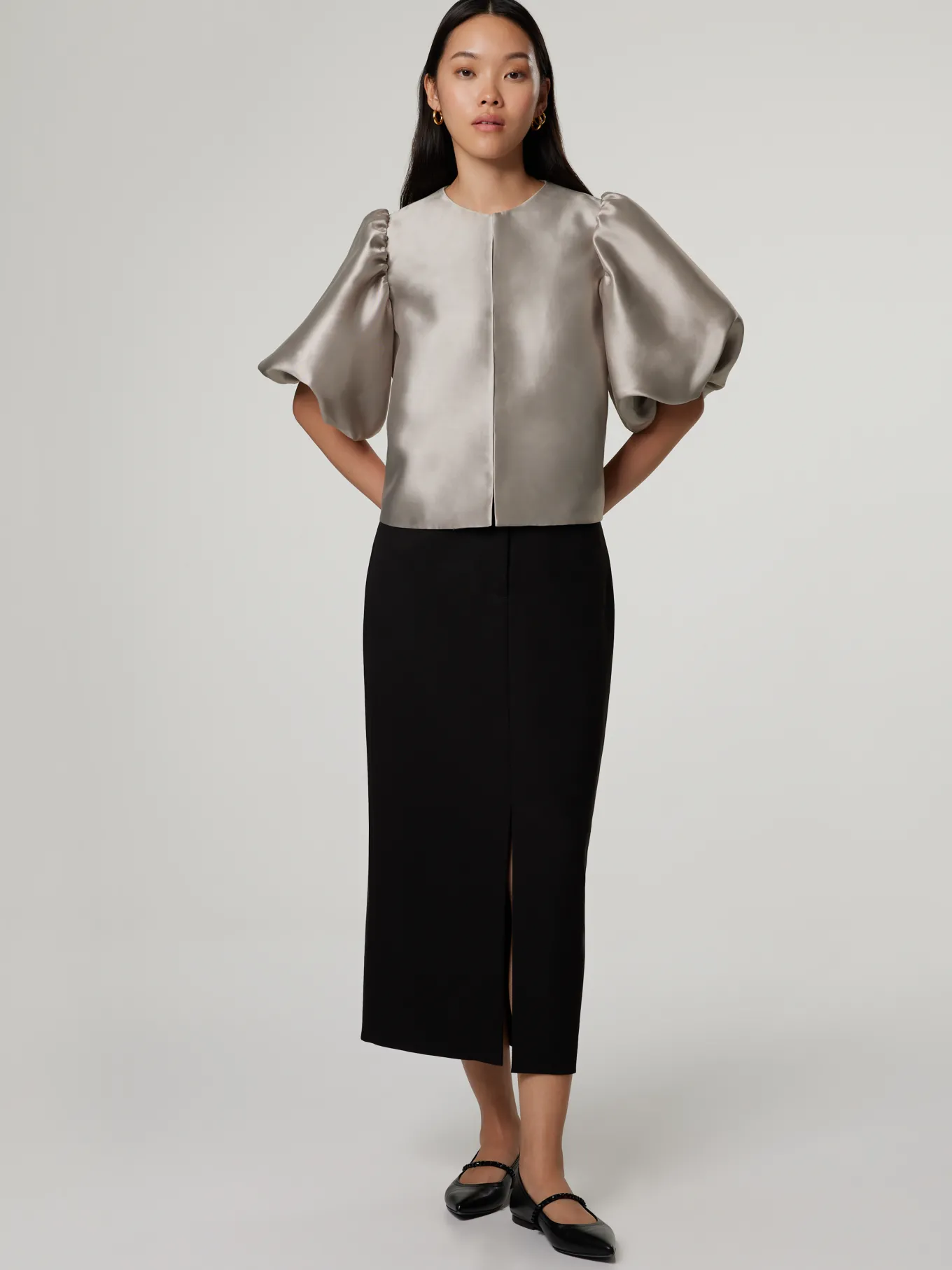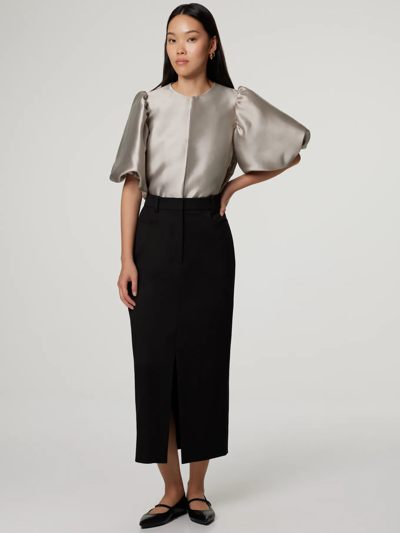 Unser Model misst 176 cm und trägt Grösse 36.