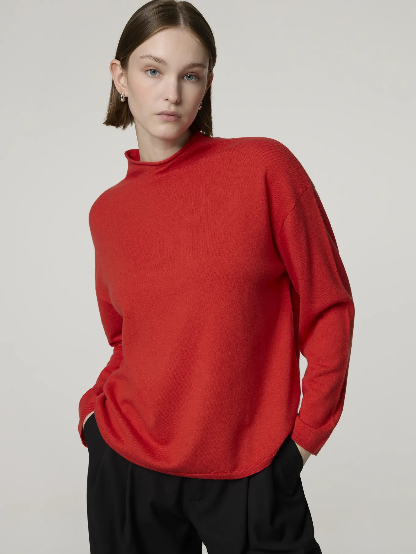 Unser Model misst 174 cm und trägt Grösse S.