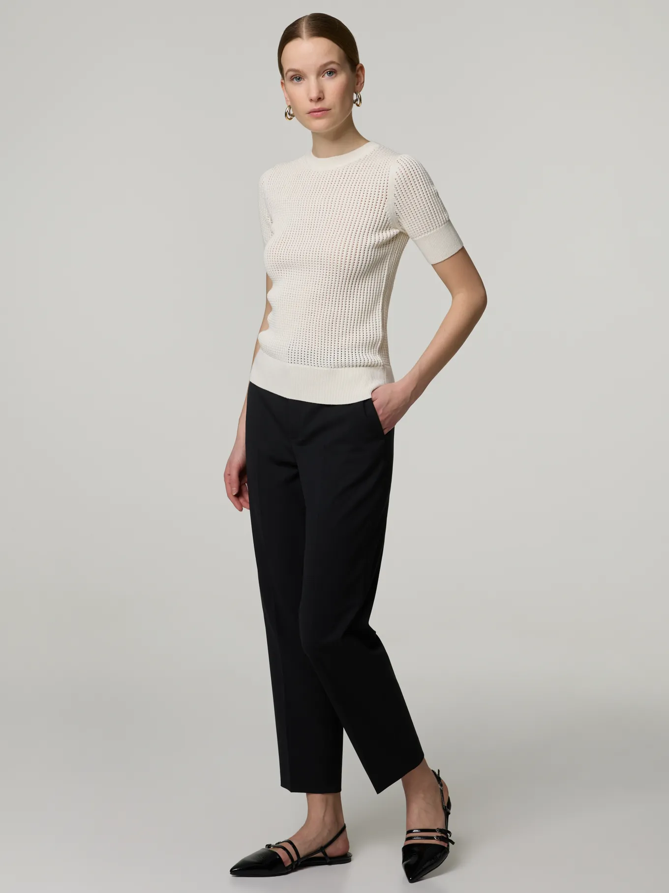 Unser Model misst 174 cm und trägt Grösse 27/34.