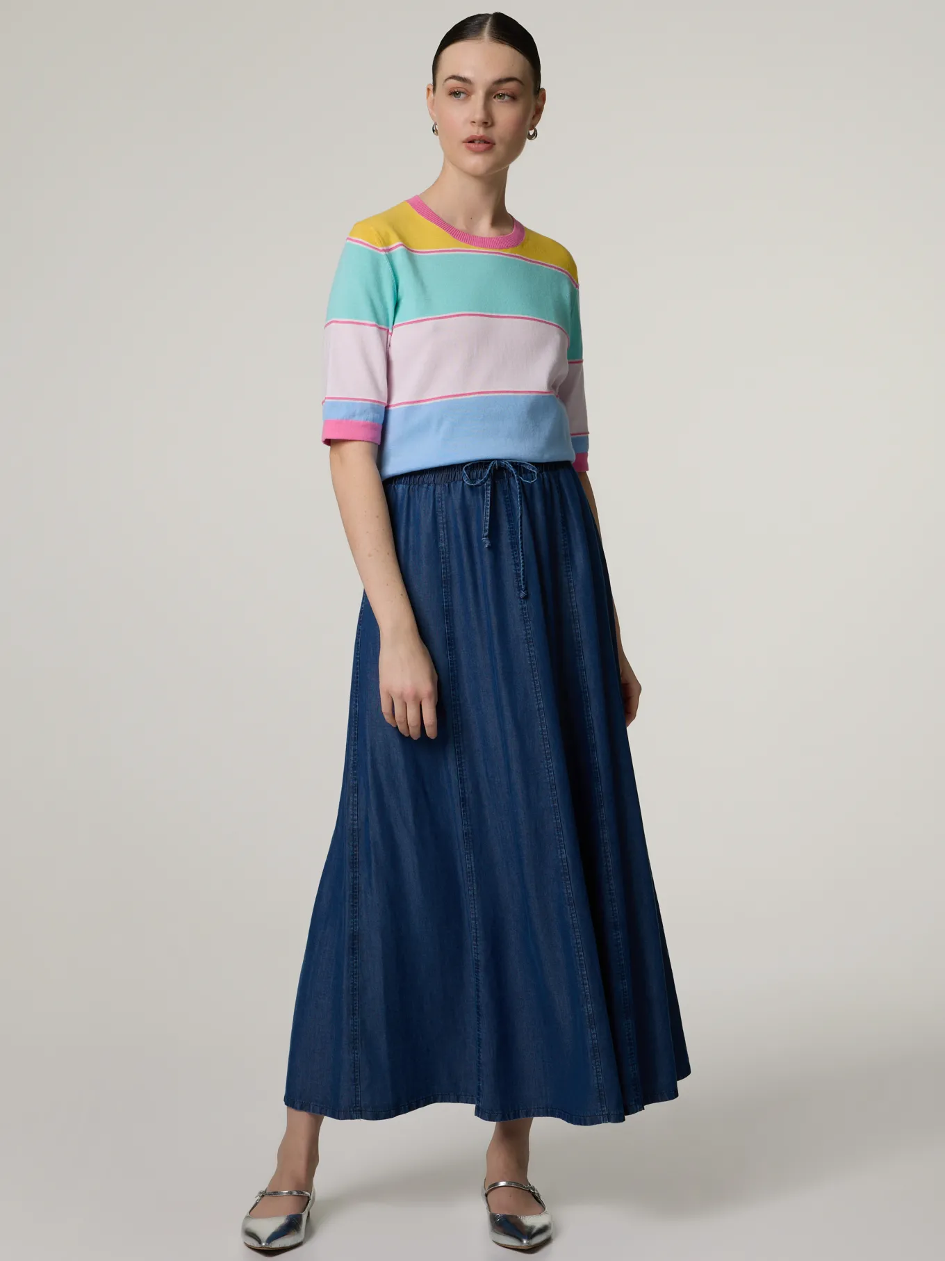 Unser Model misst 177 cm und trägt Grösse 36.