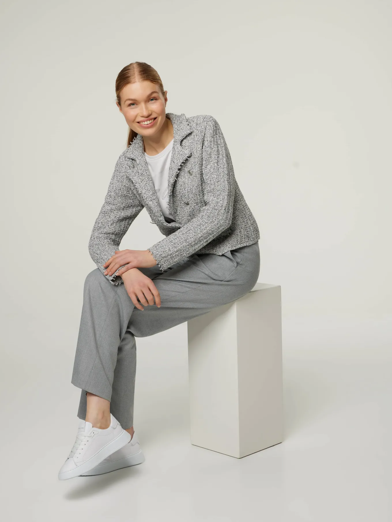 Unser Model misst 176 cm und trägt Grösse 38.