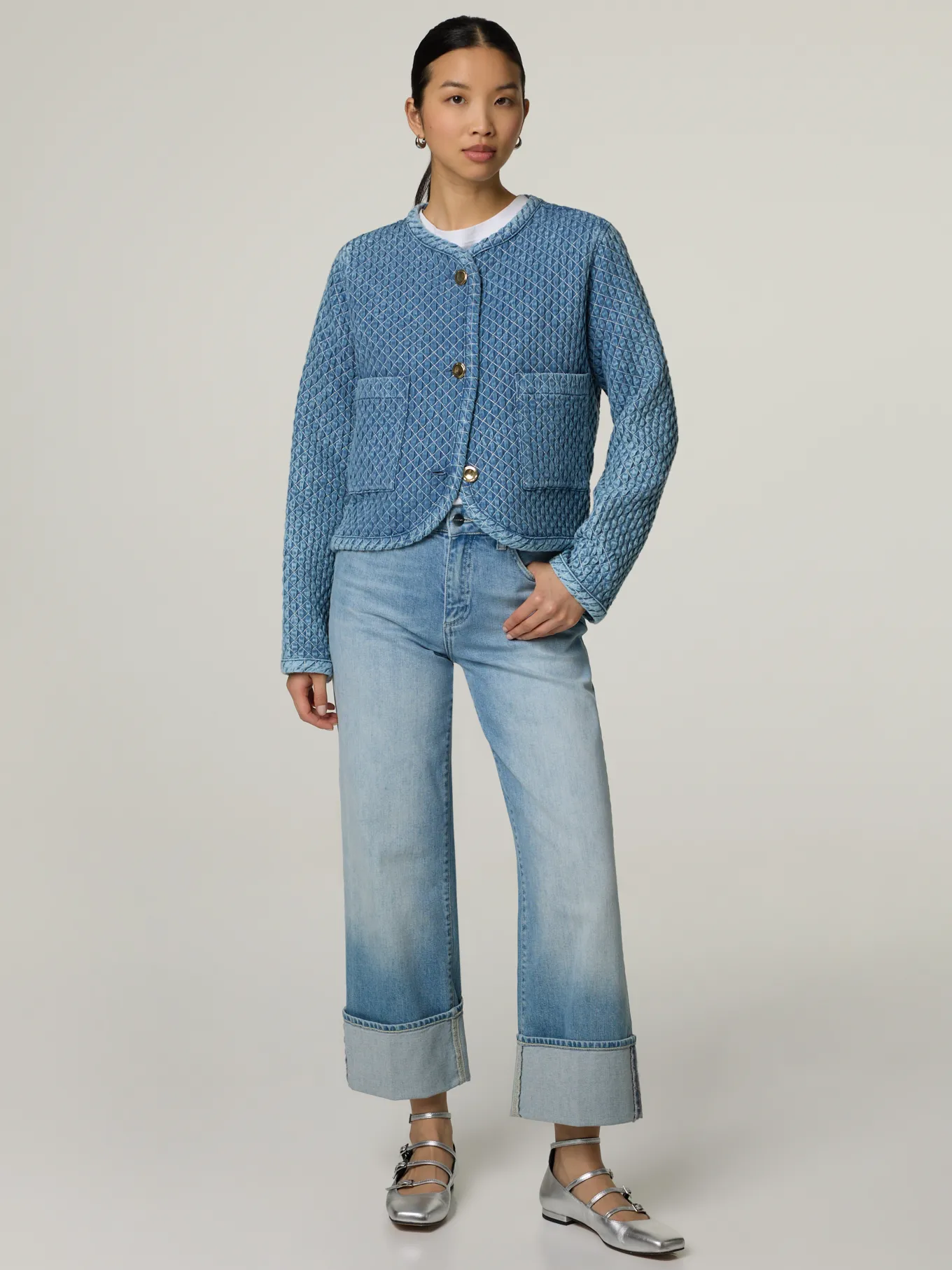 Unser Model misst 174 cm und trägt Grösse S.
