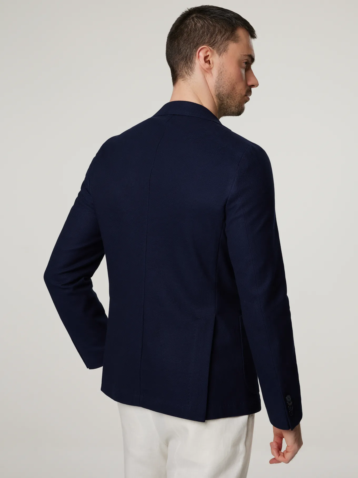 Unser Model misst 187 cm und trägt Grösse 48.
