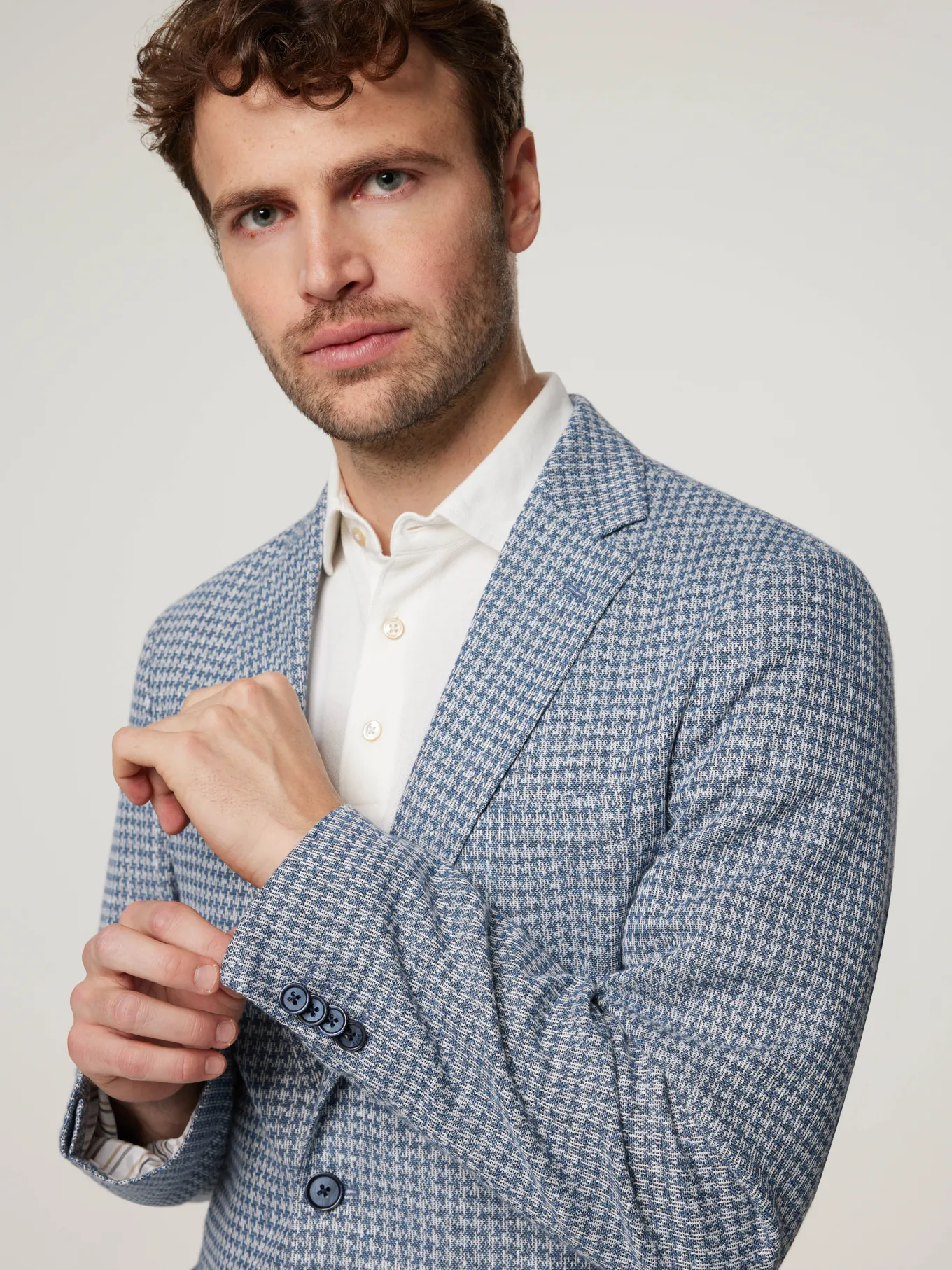 Unser Model misst 187 cm und trägt Grösse 50.