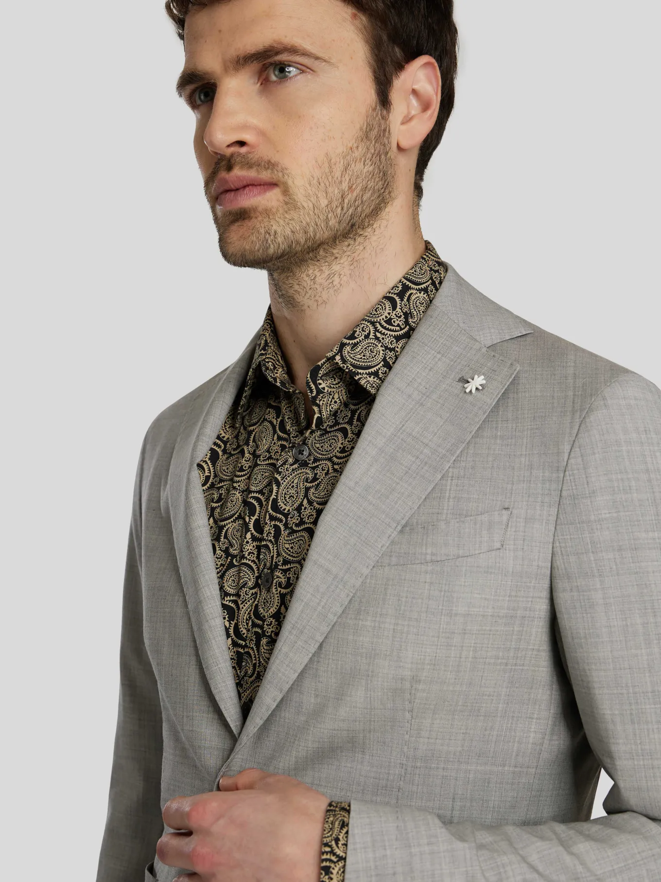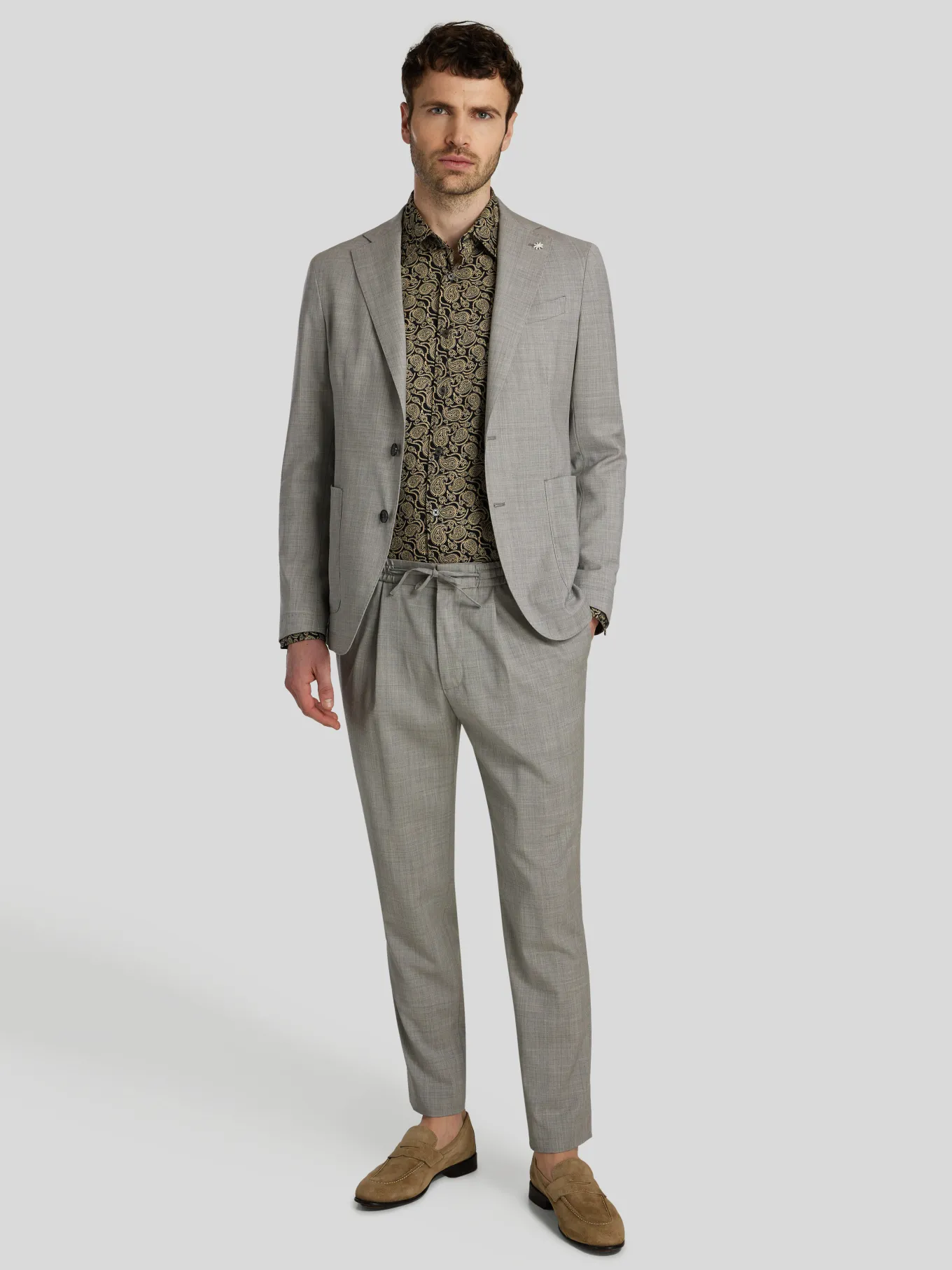 Unser Model misst 187 cm und trägt Grösse 48.
