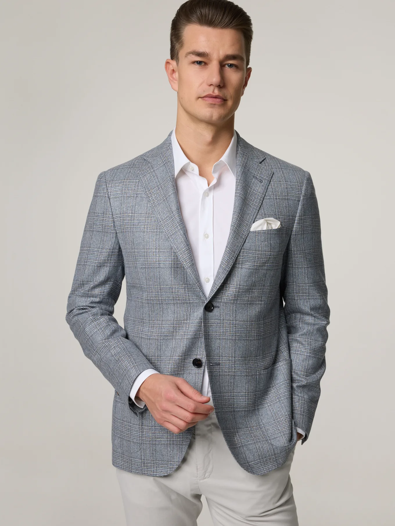 Unser Model misst 187 cm und trägt Grösse 50.
