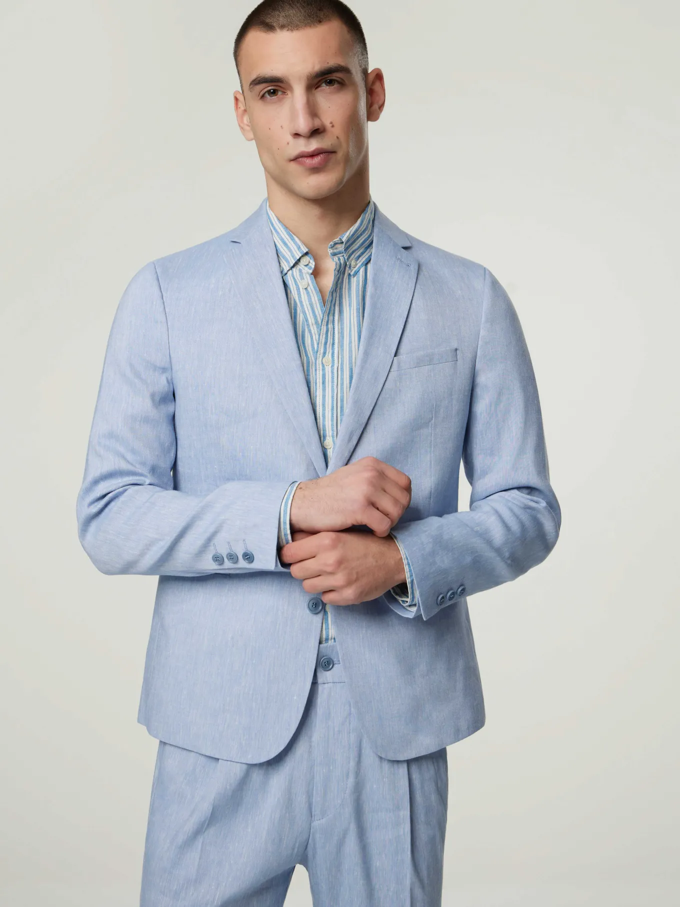 Unser Model misst 187 cm und trägt Grösse 50.