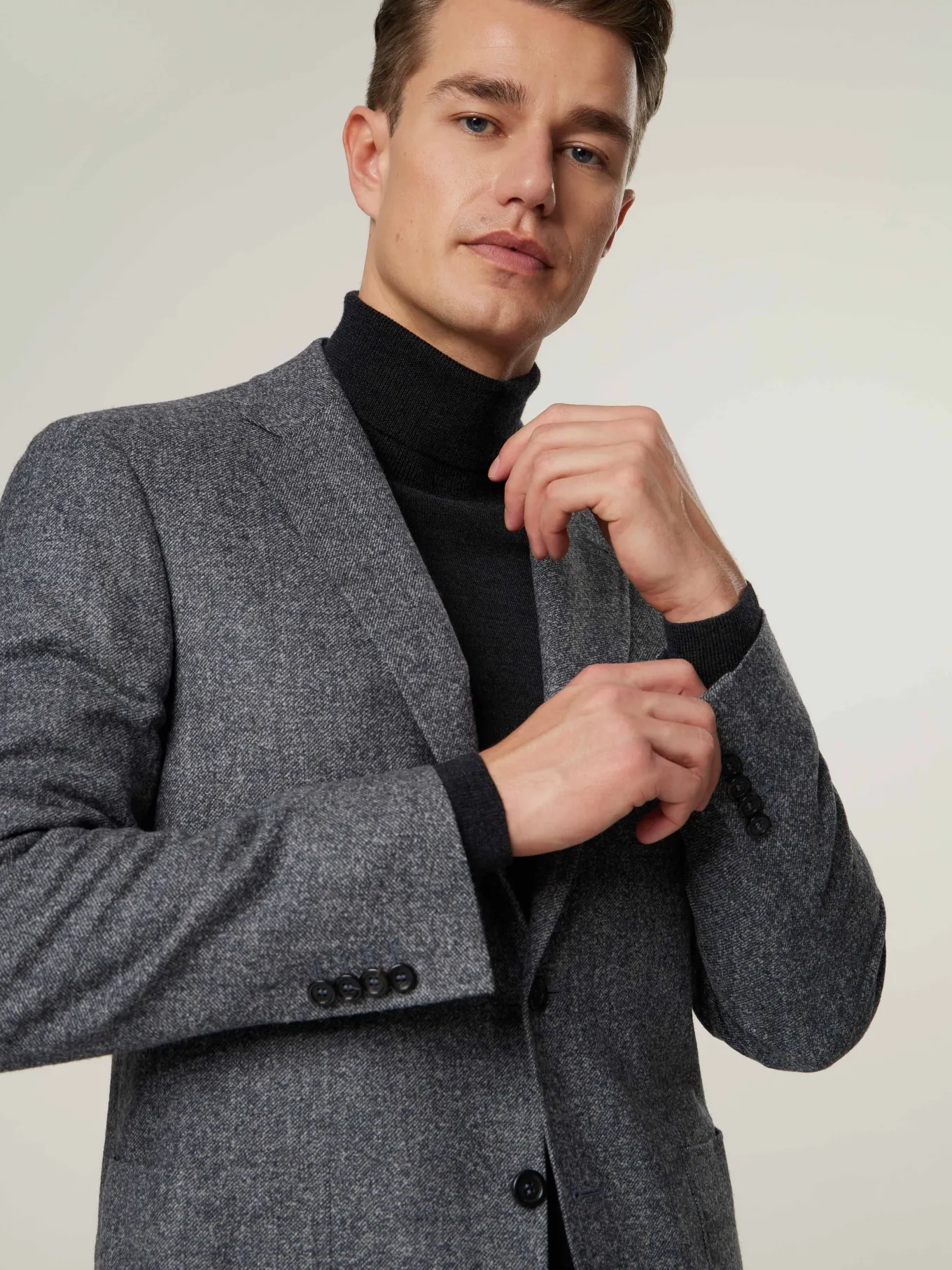 Unser Model misst 187 cm und trägt Grösse 50.