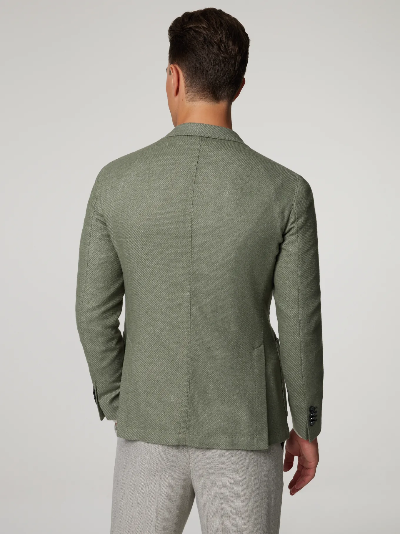Unser Model misst 187 cm und trägt Grösse 48.
