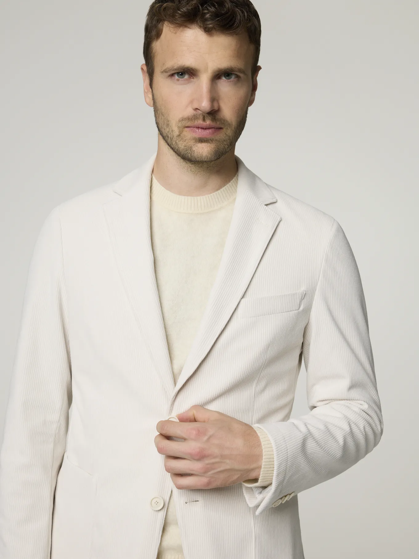 Unser Model misst 187 cm und trägt Grösse 50.
