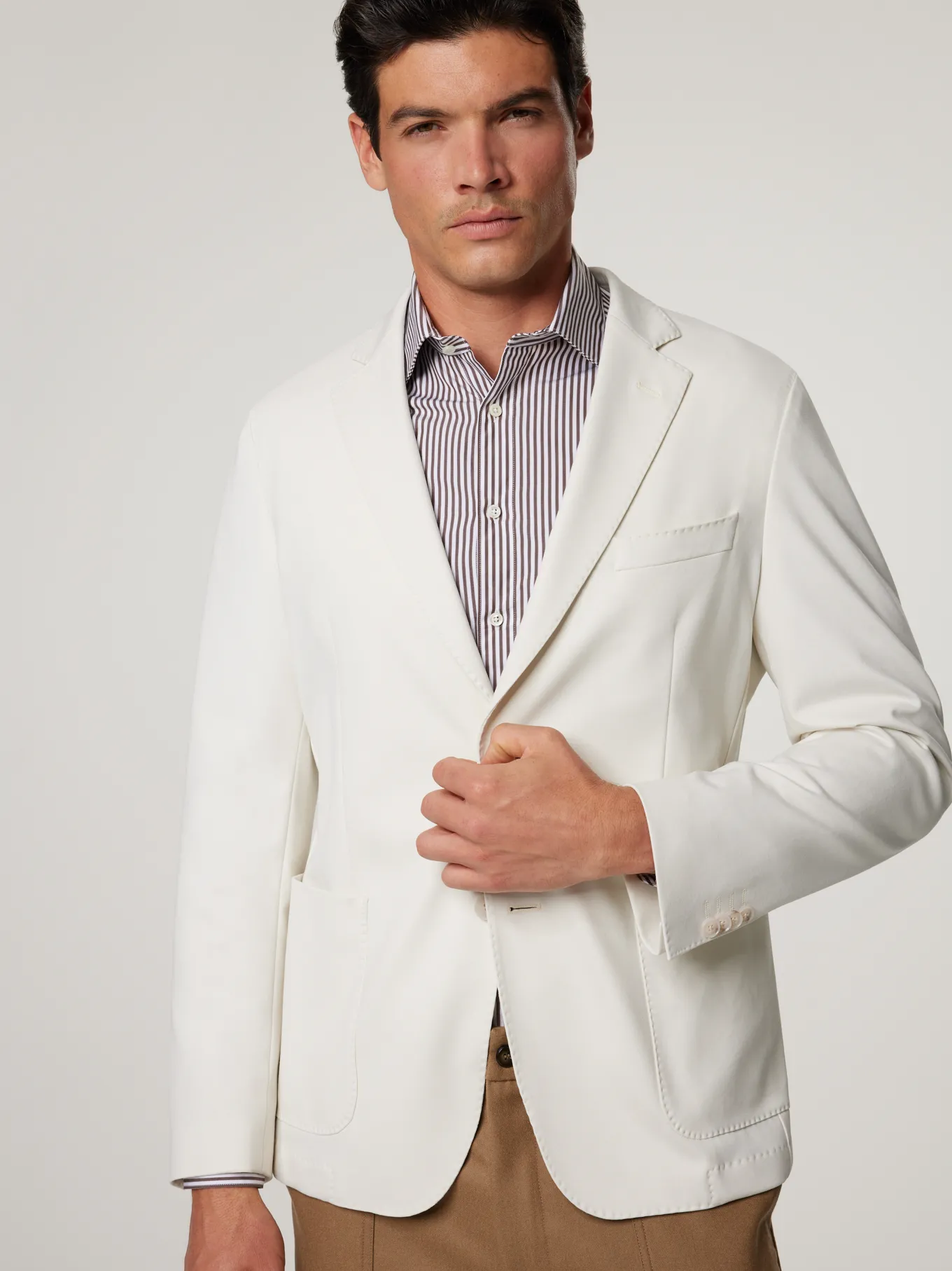 Unser Model misst 187 cm und trägt Grösse 50.
