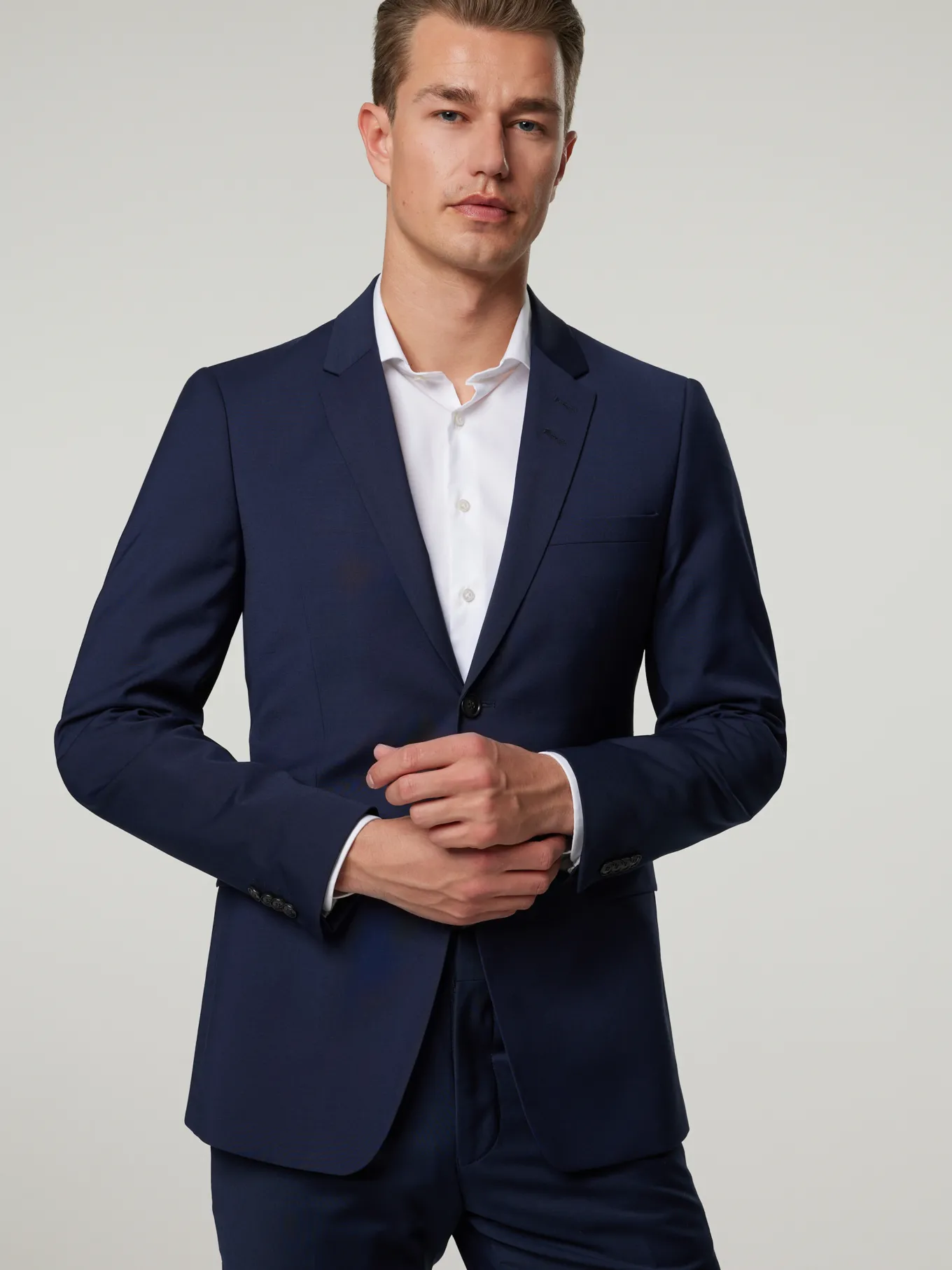 Unser Model misst 187 cm und trägt Grösse 48.