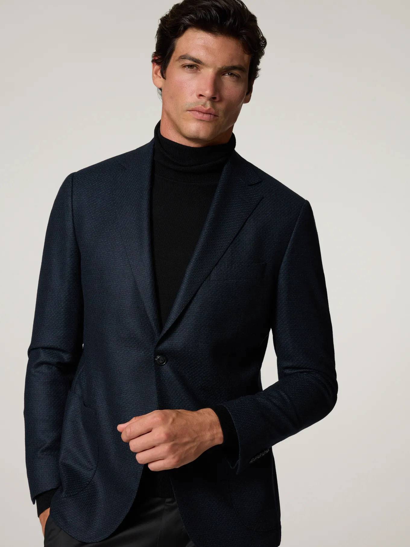 Unser Model misst 187 cm und trägt Grösse 50.