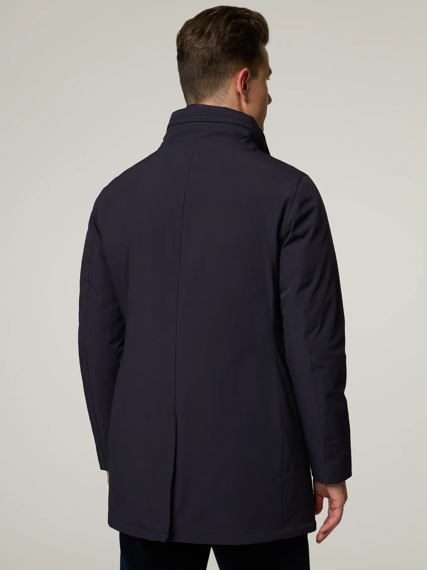 Unser Model misst 187 cm und trägt Grösse 48.